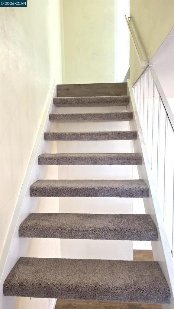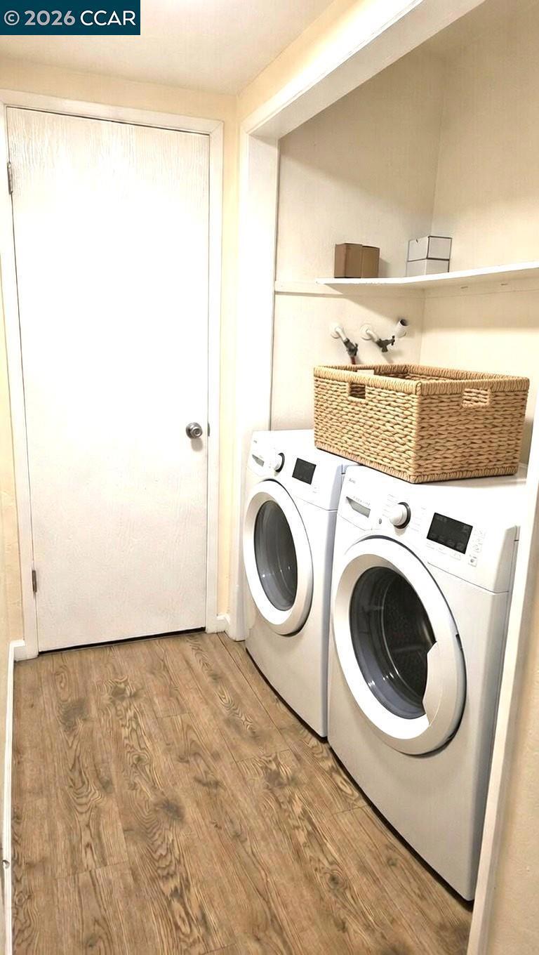 Take advantage of great pricing and own this wonderful townhome which feels and looks like a single family residence. Park your vehicle in your own covered parking right in front of the house...Walk through your own private gate into an enclosed patio with large storage to avoid lugging those heavy holiday decorations inside the house. As you enter the unit your are greeted with an open living area leading to the kitchen with stainless steel appliances, gleaming countertops and a breakfast bar. Powder room and Large laundry area with additional storage provide functionality and convenience. Upstairs you have two spacious bedrooms with brand new floor and a full bath with a soaking tub. Great location close to BART, highway, shopping & restaurants. Amenities include a community pool!! Perfect for first time home buyers, savvy investors or anyone who wants to own a slice of east bay. Some pictures are virtually staged.