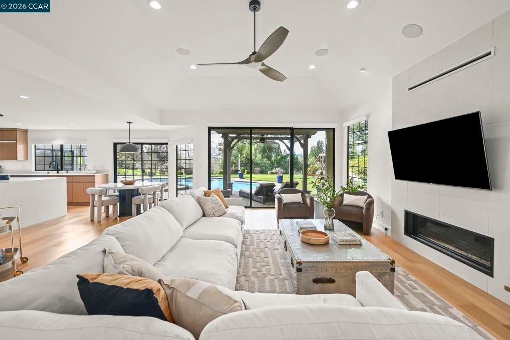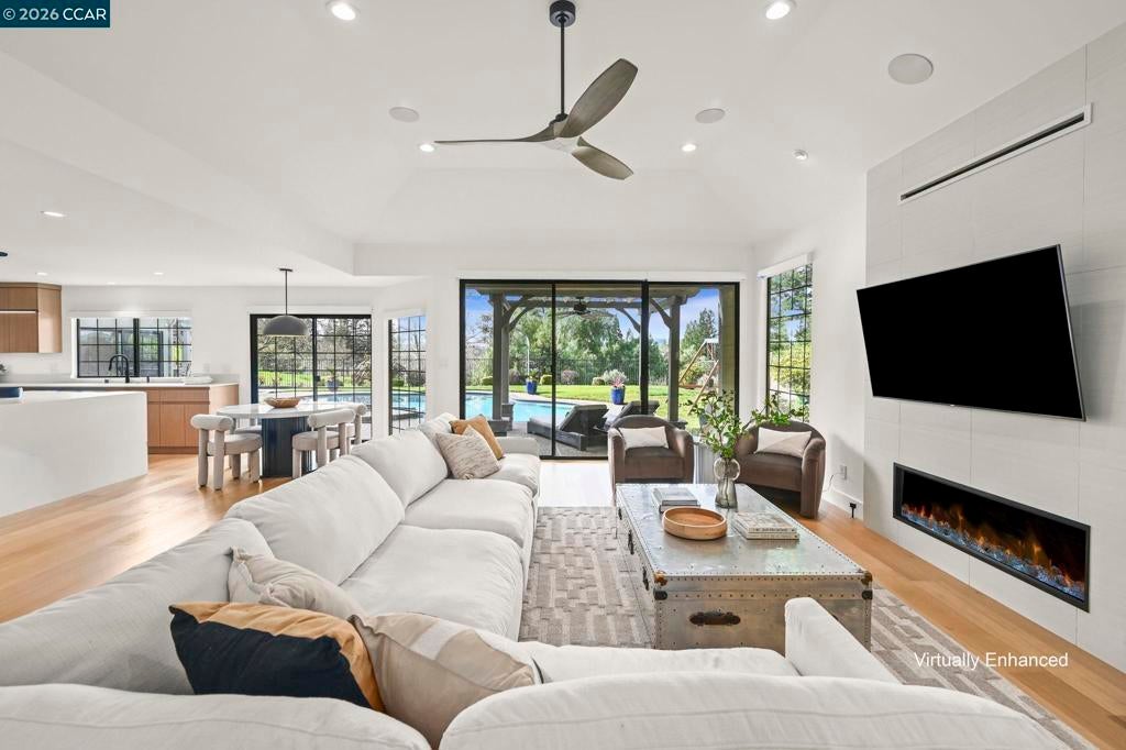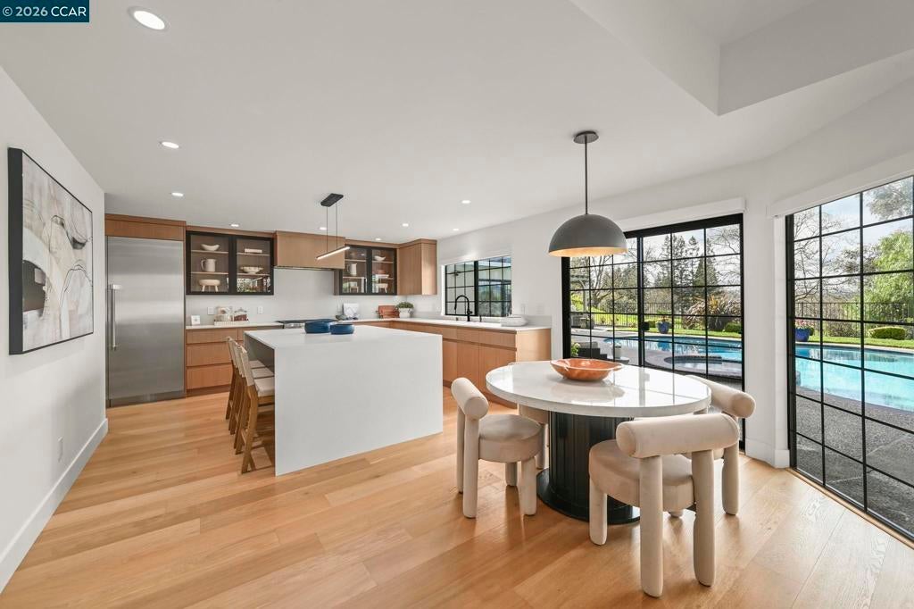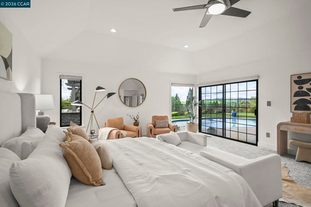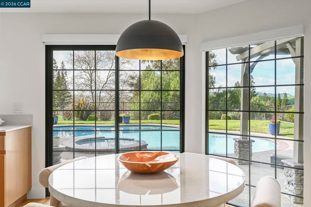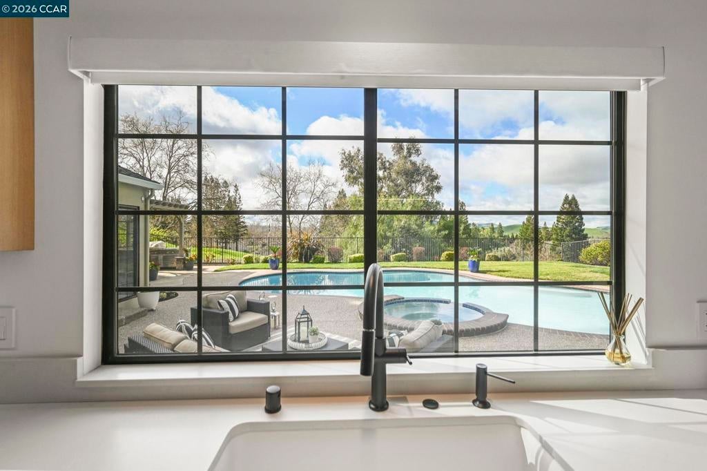 Exciting, newly remodeled dream home behind prestigious Blackhawk Security Gates. Panoramic views across the Crystal waters of the backyard pool. Over $700k in newer upgrades. Quality, detail and finish a R&J construction masterpiece. Elegance and perfection await. Upon entry, experience volume ceilings, updated lighting, gleaming hardwood floors onward to a picturesque back yard. True Gourmet Chef’s Kitchen with: A Wolf- 6 burner Range, microwave, a Thermador Fridge Freezer combination, and adjacent wine cooler. Perfectly centered around a elegant quartz center-island. Modern luxury awaits in the spacious Downstairs Primary bedroom. Soaring ceilings offer privacy and elegance, with sliding glass doors opening to the backyard pool and spa. Hardwood stairs with Glass and Contemporary touches rise to the three generously sized upstairs bedroom and bath. Heated floors with ample room to relax. Skylight enhanced upstairs bath with custom tub and shower. A great floor plan and that New Home feel. Enjoy your outdoor kitchen an entertaining Must. Grill, BBQ and room for a wine fridge. Pool/spa and room to play. A rare home, a must see! Close to shopping, top rated SRVUSD schools, Blackhawk gated security, and easy freeway access. Your chance to have a dream home of your choosing.