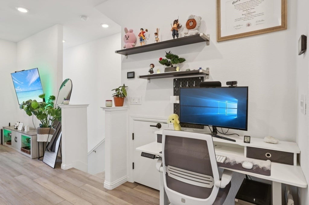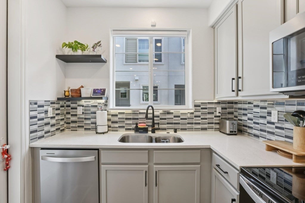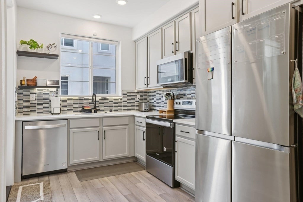 Experience modern, contemporary living in the Bay37 community at Alameda Landing, where scenic surroundings and everyday convenience come together. This charming, turn-key townhouse-style condo offers a bright and stylish layout, and the added benefit of a private 1-car garage with extra storage. The home features an updated kitchen fully equipped with a tile backsplash, plus 2 tranquil private balconies ideal for morning coffee, reading, or relaxing evenings - making indoor-outdoor living feel effortless - and a living and dining area on the main floor. The upper level offers a serene bedroom retreat which opens to a scenic balcony, an in-unit laundry closet adds to the comfort of true, easy living, in addition to a 2nd bedroom. Natural light and recessed lighting complement the home’s contemporary design throughout, creating a calm, inviting atmosphere from day to night. Furthermore, the property comes with fully owned solar system and AC. Close to Alameda Landing shopping and dining and the SF Bay Ferry, this home delivers an easy, coastal East Bay lifestyle in one of Alameda’s most convenient communities, offering a connected, waterfront-oriented lifestyle.
