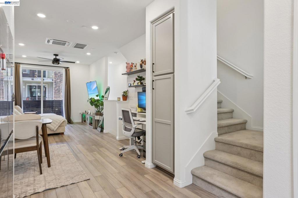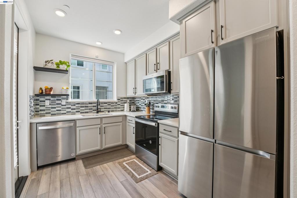 Experience modern, contemporary living in the Bay37 community at Alameda Landing, where scenic surroundings and everyday convenience come together. This charming, turn-key townhouse-style condo offers a bright and stylish layout, and the added benefit of a private 1-car garage with extra storage. The home features an updated kitchen fully equipped with a tile backsplash, plus 2 tranquil private balconies ideal for morning coffee, reading, or relaxing evenings - making indoor-outdoor living feel effortless - and a living and dining area on the main floor. The upper level offers a serene bedroom retreat which opens to a scenic balcony, an in-unit laundry closet adds to the comfort of true, easy living, in addition to a 2nd bedroom. Natural light and recessed lighting complement the home’s contemporary design throughout, creating a calm, inviting atmosphere from day to night. Furthermore, the property comes with fully owned solar system and AC. Close to Alameda Landing shopping and dining and the SF Bay Ferry, this home delivers an easy, coastal East Bay lifestyle in one of Alameda’s most convenient communities, offering a connected, waterfront-oriented lifestyle.