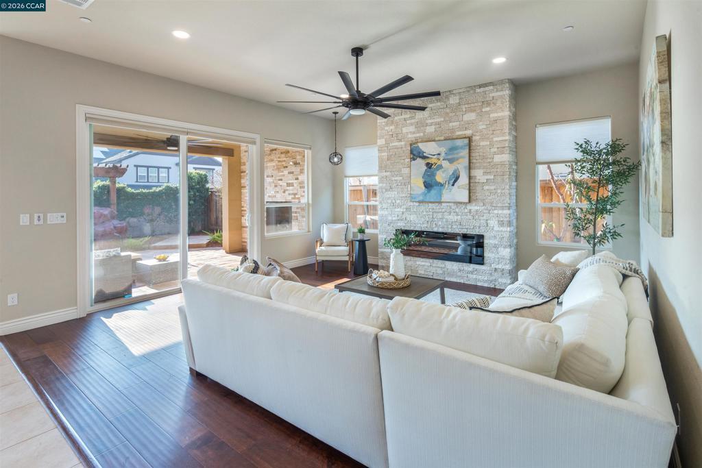 Located in the coveted 55+ Trilogy community, this rare 4-bedroom, 3.5-bath home combines flexible living spaces with true resort-style amenities. The main level features a generous primary suite, two additional bedrooms, an office/den, and a laundry room w/extra cabinetry. Upstairs, guests will enjoy their own private retreat with a bedroom, full bath, and bonus room / loft. At the heart of the home is a spacious kitchen with granite counters, SS appliances, newer refrigerator, drawer pull-outs, and a walk-in pantry, opening to a large formal dining room. Beautifully updated wood flooring throughout and a custom living room stone wall with TV mount and electric fireplace. The kitchen offers a stylish backsplash, single-basin sink, motion-sensing faucet, USB charging outlets, SolarTube, and a cellular signal booster. Comfort upgrades include six ceiling fans throughout and added living room ceiling lights, chandelier in the dining room, and designer hanging lamps in the living room and primary bedroom. Improvements include a towel warmer in the primary bath, 40-amp EV car charger in the garage, re-keyable entry locks, hideaway front door screen, and an internet-enabled garage door controller. Two paid off solar panel systems NEM 2.0. Both transfer to the new owner.