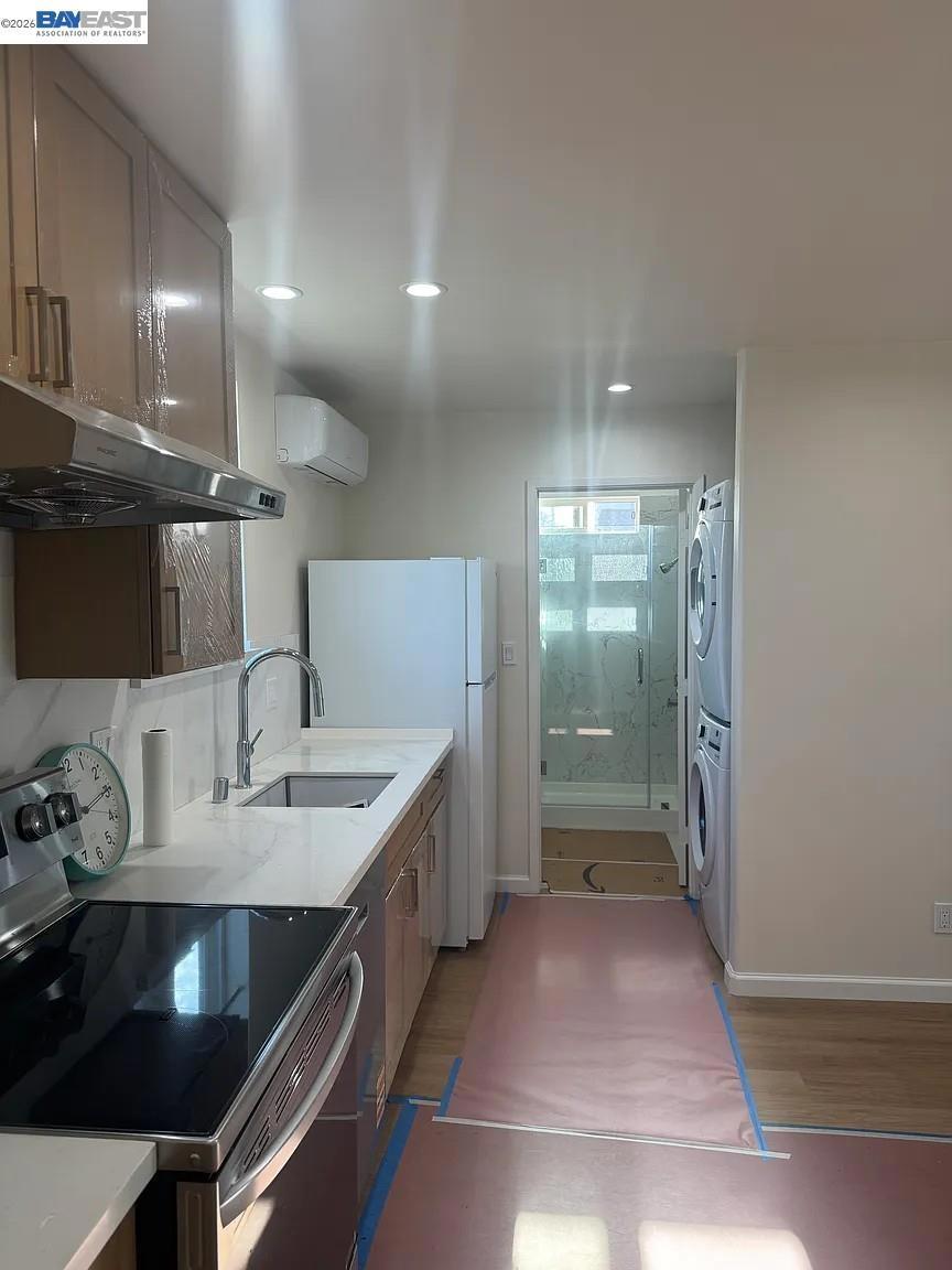 Newly constructed in 2025, this cozy 3-bedroom, 2-bathroom Accessory Dwelling Unit (ADU) offers a comfortable and private living space. Located behind the main house, it features its own entrance and private yard space. This unit is conveniently located minutes away from I-880 Freeway, San Leandro BART station, Kaiser hospital, Marina shopping center, Costco, Walmart. Walking distance from elementary and middle school. Features: - LED recessed lighting throughout the unit - Open-concept kitchen, dining, and living area - Fully electric unit - no gas appliances - Brand new appliances: electric range/oven, refrigerator, dishwasher - Stacked washer and dryer - Wall-mounted AC units for heating and cooling throughout the unit - Private entrance and yard space - Street parking Apply with RentSpree https://apply.link/U_xvUgk