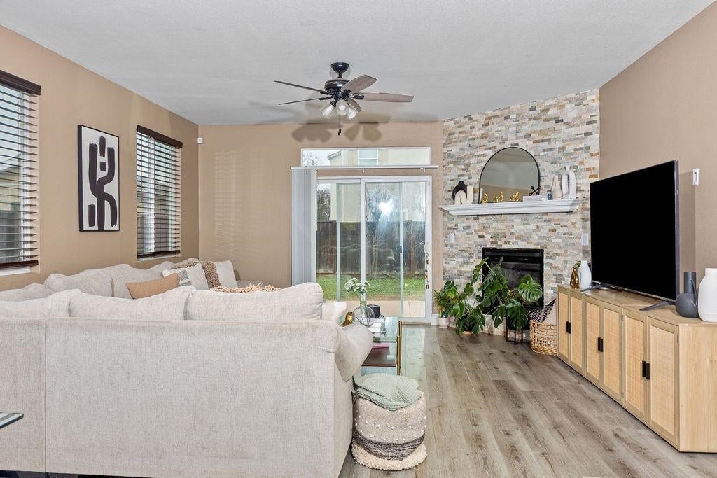 Welcome to 3624 Palermo St, Stockton. This beautifully remodeled 3 Bedroom /2-bathroom home is where warmth, style, and thoughtful upgrades come together effortlessly. Offering approximately 1,756 square feet of well-designed living space, the home features a striking stone-accented fireplace, new laminate flooring, updated baseboards, and contemporary lighting, creating a bright, welcoming ambiance. The heart of the home is the formal living & dining room with an expansive kitchen with a breakfast nook, showcasing abundant wood cabinetry, sleek countertops, stainless steel appliances, recessed lighting, and a peninsula with bar seating that opens seamlessly to the living and dining areas—ideal for everyday living and entertaining. Indulge in luxury with the amenities this Master Suite offers, including a huge walk-in closet, delightful his and hers vanity sink, laminate floor and stall shower. A newer AC unit provides year-round comfort, while the low-maintenance backyard offers stamped concrete, a brand-new shed, and rare RV access. Ideally located near Lincoln Center, Victory Park, the Miracle Mile, and the Stockton Marina, with convenient access to major commuter routes, this turnkey residence delivers exceptional comfort, functionality, and lifestyle appeal.