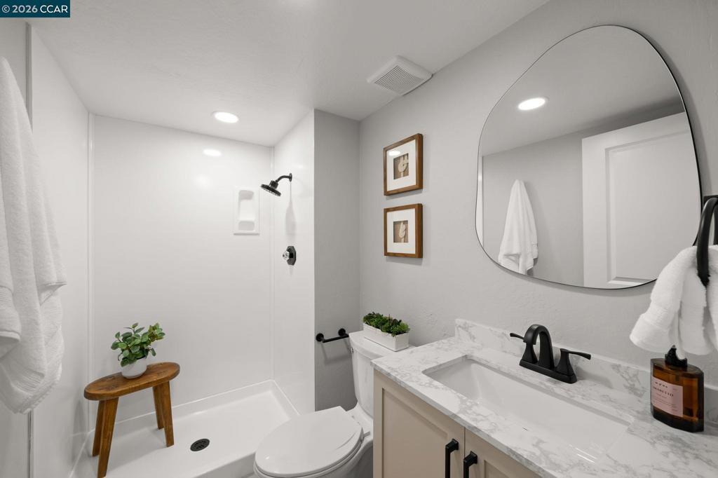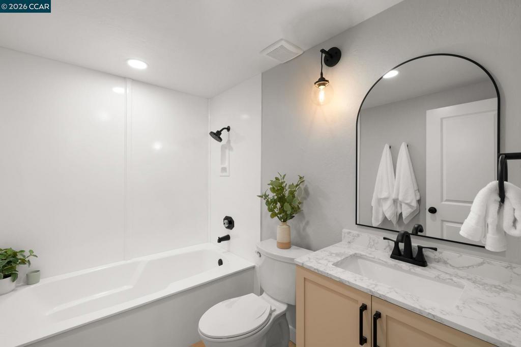 This beautifully renovated 4-bd,3-ba,1,972 sq ft home in the prestigious Twin Creek enclave of San Ramon is thoughtfully updated&designed w/modern sophistication&comfort.This exceptional residence features a fully renovated chef’s kitchen,updated bathrooms,wide plank luxury flooring,dual pane windows,designer paint colors,new cabinetry&appliances,updated lighting,new HVAC&dual living spaces.The chef’s kitchen is the heart of the home,showcasing premium appliances, generous storage&contemporary designer finishes.The great room encompasses the living,dining &kitchen spaces highlighted by soaring vaulted ceilings&natural light.The inviting family room offers a wood-burning fireplace&built-in desk area.A main-level bedroom& full bath provide ideal flexibility for guests or private office.The primary suite is a true oasis w/ spa-inspired en suite featuring custom shower, soaking tub, dual-sink marble vanity&three closets.The backyard retreat includes manicured landscaping,citrus trees,spacious deck w/trellis—perfect for entertaining.Residents enjoy access to community pool,tennis&basketball,award-winning schools&close proximity to San Ramon City Center,parks hiking&commuter routes.A rare opportunity to acquire a fully renovated home in one of SR's most desirable neighborhoods!Open S/S