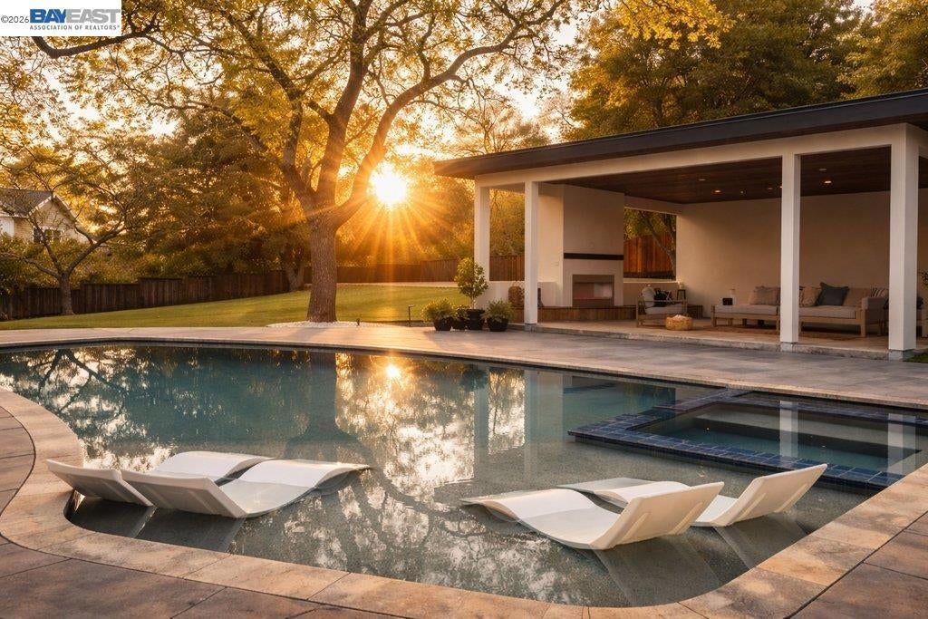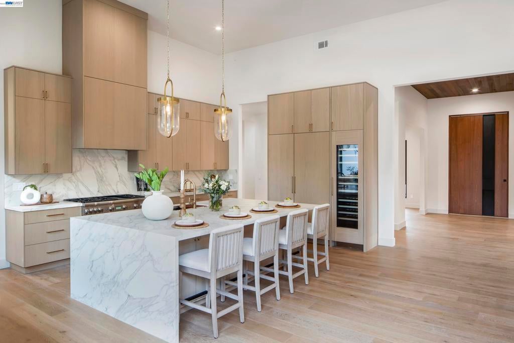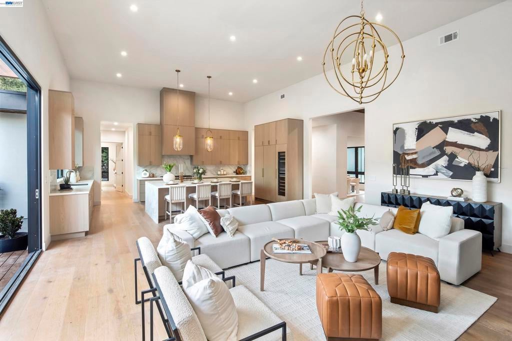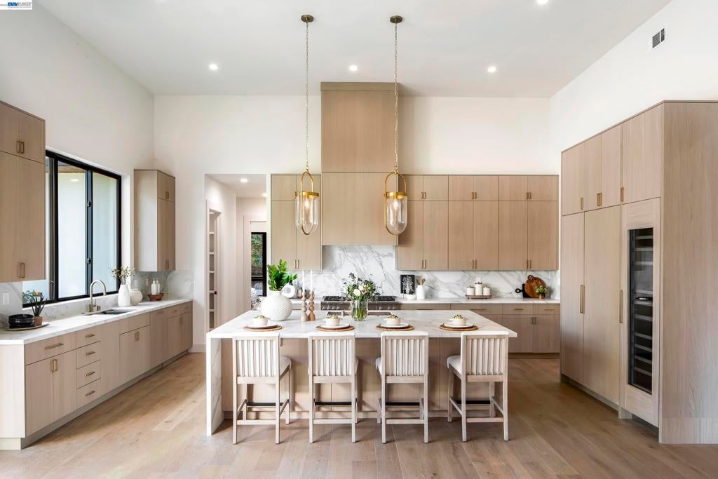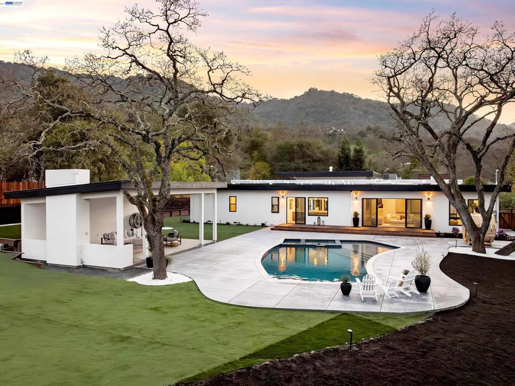 Set on 1.12 acres in the heart of Danville’s highly coveted Westside, an extraordinary single-story newly expanded masterpiece captures picturesque views of Mount Diablo while offering the rare convenience of a short stroll to the charm, dining, & boutiques of downtown. Spanning approximately 4,728 sq ft & boasting five bedrooms & 3.5 bathrooms, a separate office, & a sprawling bonus room with sliders to the scenic park-like yard. Relish the luxurious primary bathroom suite with custom dual vanities, a freestanding soaking tub, & a large walk-in shower. At the heart of the home, the chef’s kitchen is both stunning & functional. Thermador appliances, a large center island with Neolith countertops, custom cabinetry, a built-in wine refrigerator, & statement lighting. A dramatic wall of windows fully opens to the private courtyard with a built-in fire pit, creating a seamless connection between indoor & outdoor spaces. The kitchen flows effortlessly into the adjacent great room featuring soaring ceilings & a striking fireplace. Resort-inspired outdoor living defines the estate’s grounds. A newly remodeled pool & spa are complemented by a built-in cold plunge. 640-sq.ft covered pavilion, with a built-in fireplace. Breathtaking views &expansive grounds. Luxury & convenience!