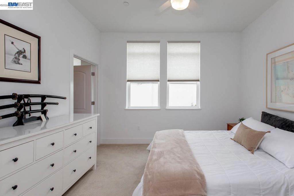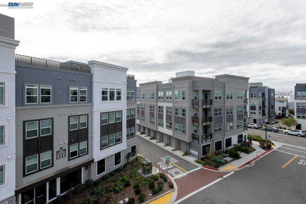Discover modern coastal living at its finest in this stylish single-level corner penthouse condo in the coveted Bay 37 waterfront community, built in 2022. This beautifully designed two-bedroom, two-bath condo showcases an ADA friendly open-concept layout, walls of windows that fill the home with natural light, and spacious bedrooms that provide both comfort and privacy. Set within a contemporary building, the home offers desirable amenities including a private garage, dedicated bike storage, and panoramic rooftop views. The sleek kitchen features high-end appliances, a generous center island perfect for casual meals or entertaining, and an effortless flow into the bright, airy living spaces. Bay 37 delivers an exceptional lifestyle with a waterfront park, scenic estuary walking paths, picnic areas, a playground, and a community dock. Ideally located just steps from Bohol Circle, Target, Safeway, and popular local dining spots, daily conveniences are right outside your door. Commuting is simple with a complimentary shuttle to 12th Street BART, a free water taxi to Jack London Square, and nearby ferry service offering direct access to San Francisco.