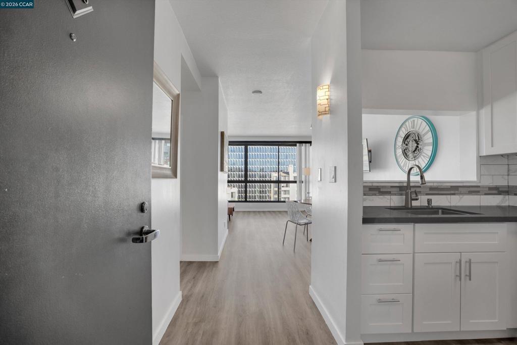 Bright and beautifully upgraded, this serene upper floor studio is located in the heart of one of San Franciscos most vibrant and walkable neighborhoods - Yerba Buena. Just steps from SF MoMA, Yerba Buena Gardens, and the Moscone Center, the home combines modern finishes with unbeatable urban convenience. As you step inside you are greeted by updated kitchen which features quartz countertops, sleek appliances, and a city view as you peer through the main living space. With luxury vinyl plank floors throughout, trendy bathroom updates, and a wall of north-facing windows that fills the space with natural light and offers expansive views. Residents enjoy a beautiful third-floor garden, 24/7 front desk service, secure package room, and on-site management. HOA fees cover water, sewer, garbage, insurance, and common area maintenance. Leased parking available for $360/month. Nearby SoMa, Mission Bay, South Beach. Close to Trader Joes, Target, Costco and more. Easy access to CalTrain, BART, and Muni.