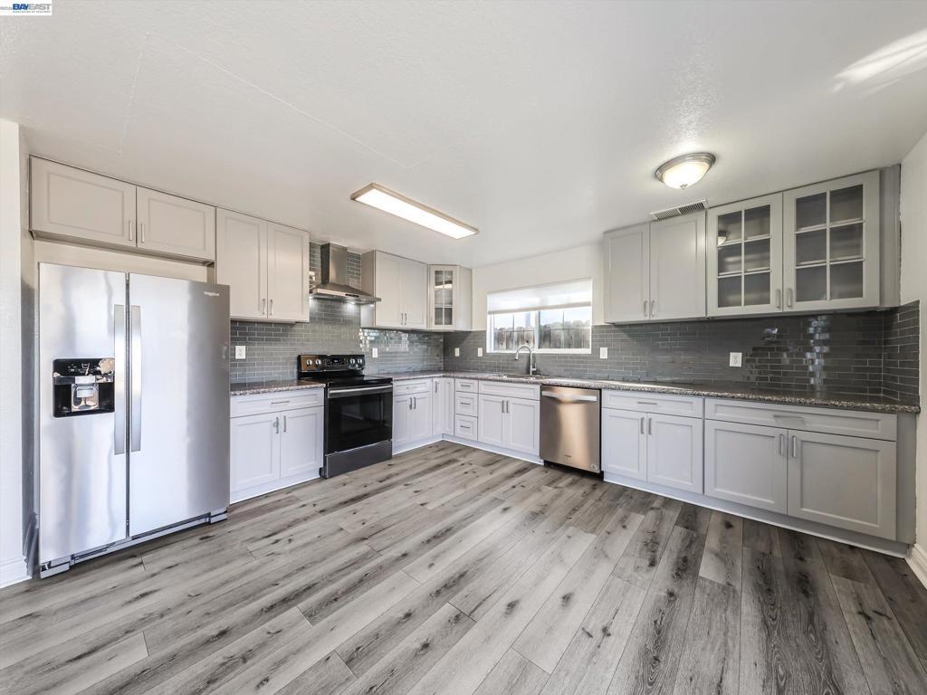 Welcome to this beautifully maintained home with quality updates featuring a huge low maintenance backyard. Inside home laminated flooring throughout. Beautiful kitchen. New stainless steel stove , dishwasher and new hood. Refrigerator and washer, dryer included. Close to Bart. Ready to move in