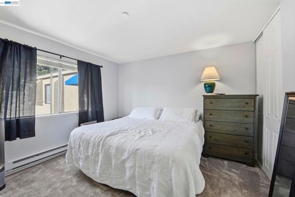 This bright and inviting 2 bedroom 1 bathroom condo in the highly sought after Fremont Villas. The top level unit boast high ceilings and ample natural light. recently completed new carpet, and paint. There is plenty of parking for all your guests and a carport under the building. The HOA offers a sparking pool and a clubhouse, meticulously maintained green areas, and water, sewer, and garbage services. It is centrally located and it is a quick walk to BART, to parks, Lake Elizabeth, grocery stores, and the Fremont Hub