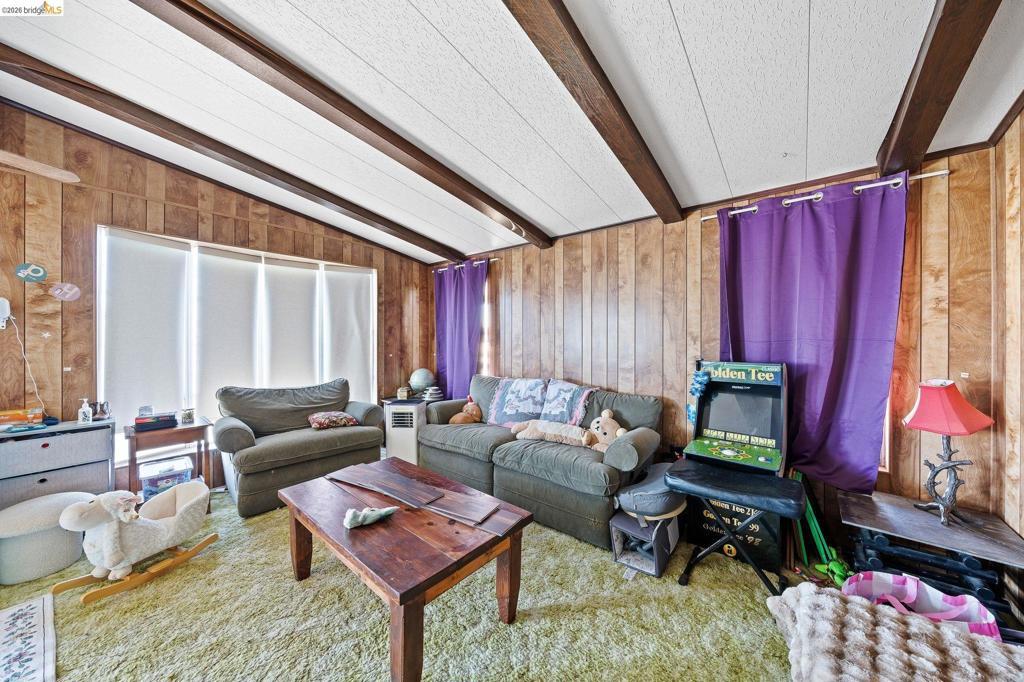 Spacious mobile home located in a desirable waterfront community within a family-friendly park. This well-maintained home offers 1,536 sq ft of living space plus two enclosed bonus rooms, providing flexibility for hobbies, workshop space, or additional storage. Features include two large bedrooms positioned on opposite ends for privacy. The oversized front bedroom offers abundant natural light, mirrored closet doors, an attached bathroom, and a bonus area large enough to convert into a third bedroom if desired. The primary suite includes an ensuite bathroom with a jetted walk-in tub and separate shower. Open-concept living area with new vinyl plank flooring in the bathrooms. Indoor laundry room includes washer, dryer, and an additional refrigerator. Front entry ramp leads to a covered porch, plus enclosed front (19’x8’) and back (17’x9’) patio areas. Covered carport parking. Recent updates include a new water heater, both toilets replaced, reinforced carport supports, and exterior repainting at time of purchase. Conveniently located near waterfront dining, public boat launches, and access to over 1,000 miles of Delta waterways. Fireplaces: NO