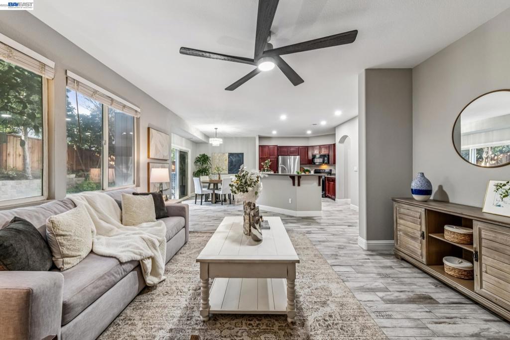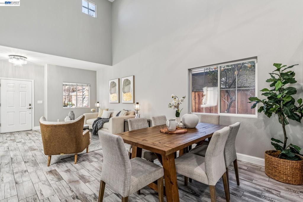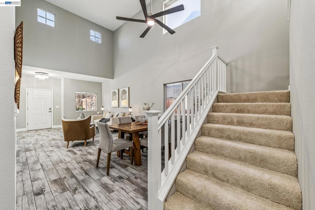 Tucked away in a quiet & court location within Edgewood community, this beautiful home welcomes you w/soaring vaulted ceilings & great lighting. The formal living & dining areas are particularly elegant, featuring tall ceilings that add a sense of grandeur. The heart of the home is an open-concept layout where the family room, anchored by a cozy fireplace, flows effortlessly into the kitchen & breakfast nook. The kitchen offers warm cabinetry, solid countertops & a gas stove. This level also includes half bath, a convenient indoor laundry room, additional storage & access to the attached 2 car garage. Upstairs, the spacious primary suite serves as a private sanctuary, complete with a double-sink vanity, a large soaking tub, a separate shower & a walk-in closet. 3 additional bedrooms & a full bathroom complete the upper level, providing plenty of room for family, guests, or a home office. Step outside, a raised deck overlooks a lushly landscaped yard that remains low-maintenance, perfect for weekend gatherings. This home is also packed with high-value upgrades: new paint, carpet, fully paid-off electric solar system, a tankless water heater, HVAC, fence & light fixtures. Located just 5 minutes from parks, shopping, the ACE train & all within the Jefferson School District.