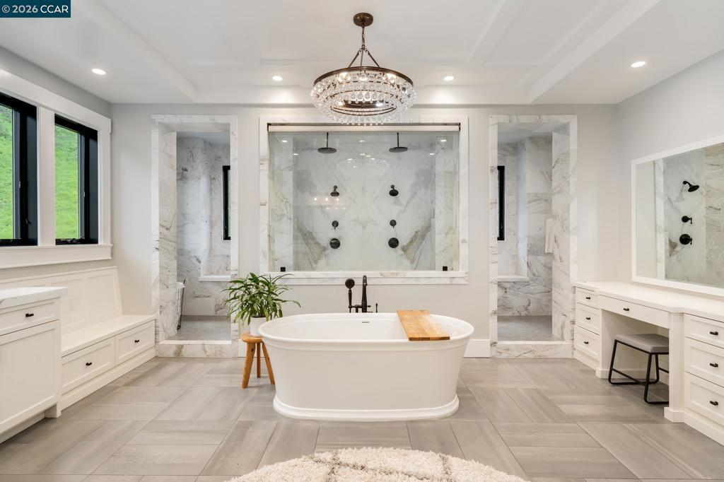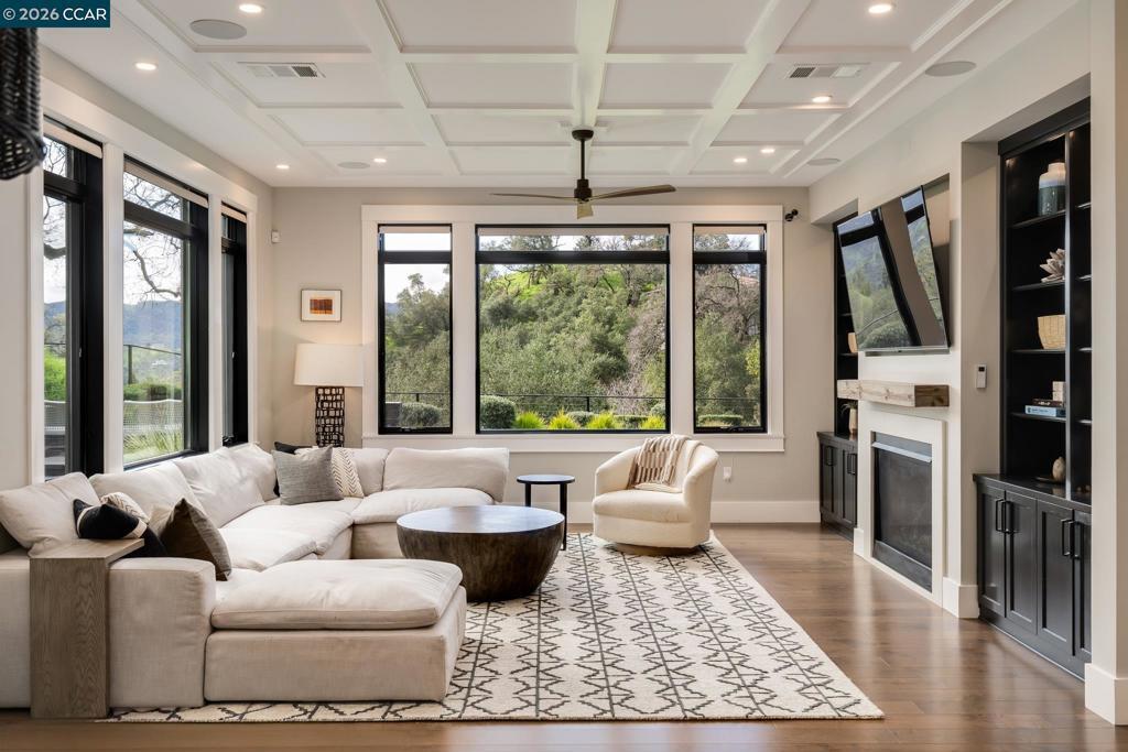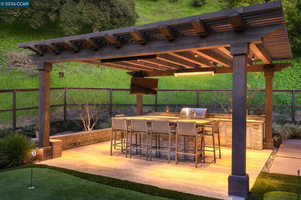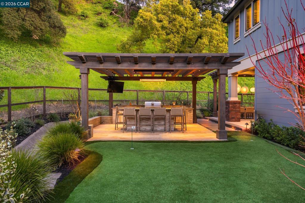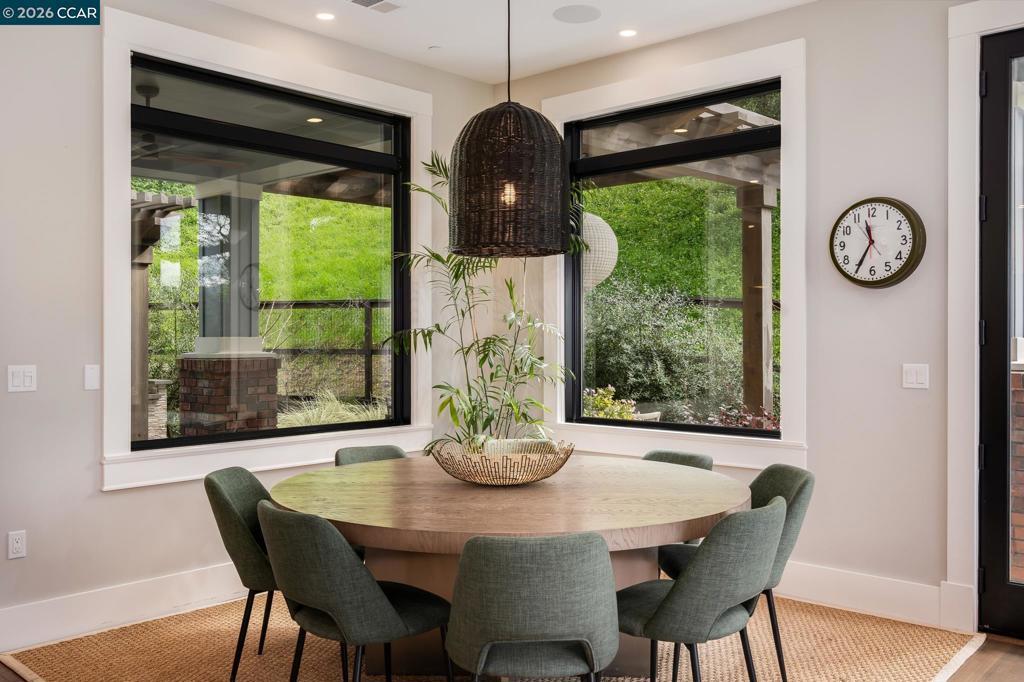 Located within the exclusive gated enclave of Legacy Ridge, just minutes from Round Hill Country Club, this contemporary new construction home offers refined design, privacy, and beautiful sweeping views. All bedrooms are en suite, complemented by an additional full bath with outdoor access and two powder rooms, including one off the upstairs loft. The chef’s kitchen is thoughtfully designed with top-tier appliances, dual dishwashers, an oversized island, walk-in pantry, and seamless flow to both casual and formal dining areas. The primary suite is a private retreat featuring a fireplace, spa-inspired bath, and expansive custom walk-in closet. Outdoors, the Peter Koenig–designed backyard is ideal for entertaining with an outdoor kitchen, fire pit, putting green, and manicured lawn. Andersen windows, motorized shades, box-beam ceilings, custom built-ins, and a Sonos surround system complete this exceptional residence. Take advantage of Round Hill Country Club living, close to parks, trails to Mt. Diablo, freeway access and within the San Ramon Valley School District.
