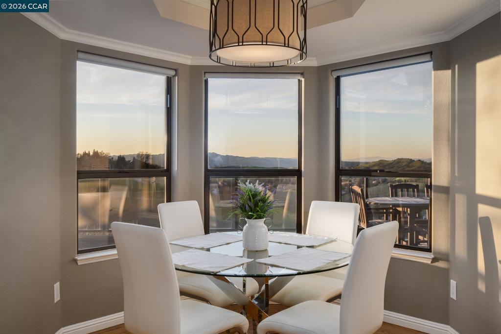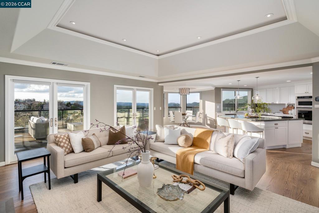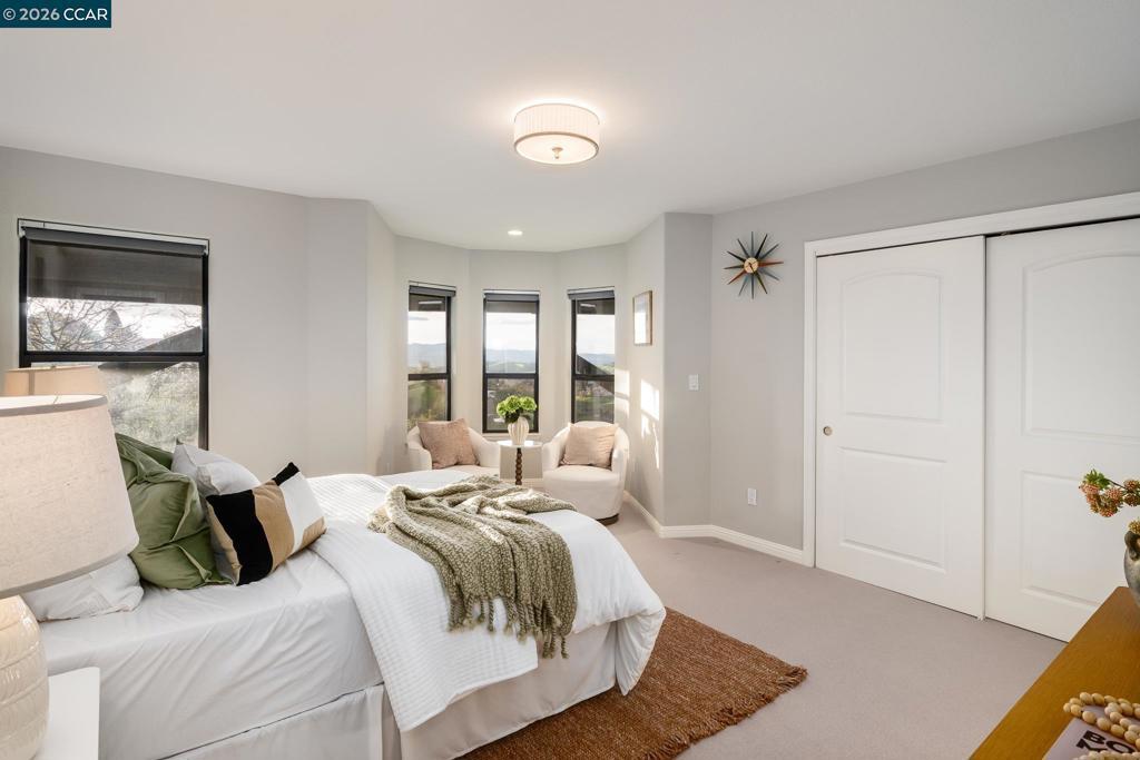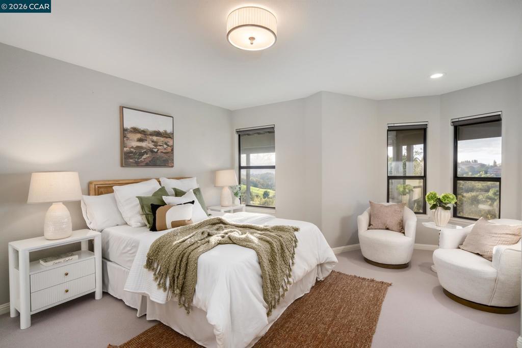 Located in the highly sought-after Roundhill North neighborhood of Roundhill in Alamo, this exceptional estate sits on a premium .87-acre, court location & offers 3,838 square feet of beautifully upgraded living space. Featuring 4 bedrooms & 3.5 bathrooms, the home is designed for both elegant entertaining & everyday comfort. Soaring ceilings, expansive windows, & rich hardwood floors fill the interiors with natural light, while two striking stone fireplaces anchor the formal living & family rooms. A temperature-controlled wine cellar enhances the home’s entertaining appeal. The chef’s kitchen showcases a large center island, WOLF gas range, stainless steel appliances, walk-in pantry, & eat-in nook, seamlessly opening to the family room. The luxurious primary suite includes a private sitting area & spa-inspired bath with dual shower heads, soaking tub, radiant heated floors, dual vanities, & a custom walk-in closet. Bedrooms feature antimicrobial wool carpeting. Enjoy panoramic hill views from the spectacular 900+ sq. ft. overlook deck. Additional highlights include owned solar, prewiring for EV charging, a presidential roof, manicured landscaping, & a three-car garage. 145 Sugar Creek Court offers privacy, prestige, & refined living in one of Alamo’s most coveted communities.