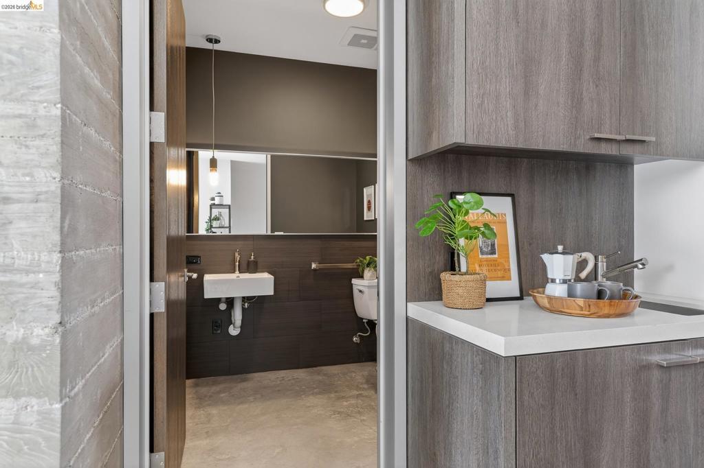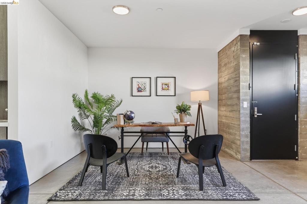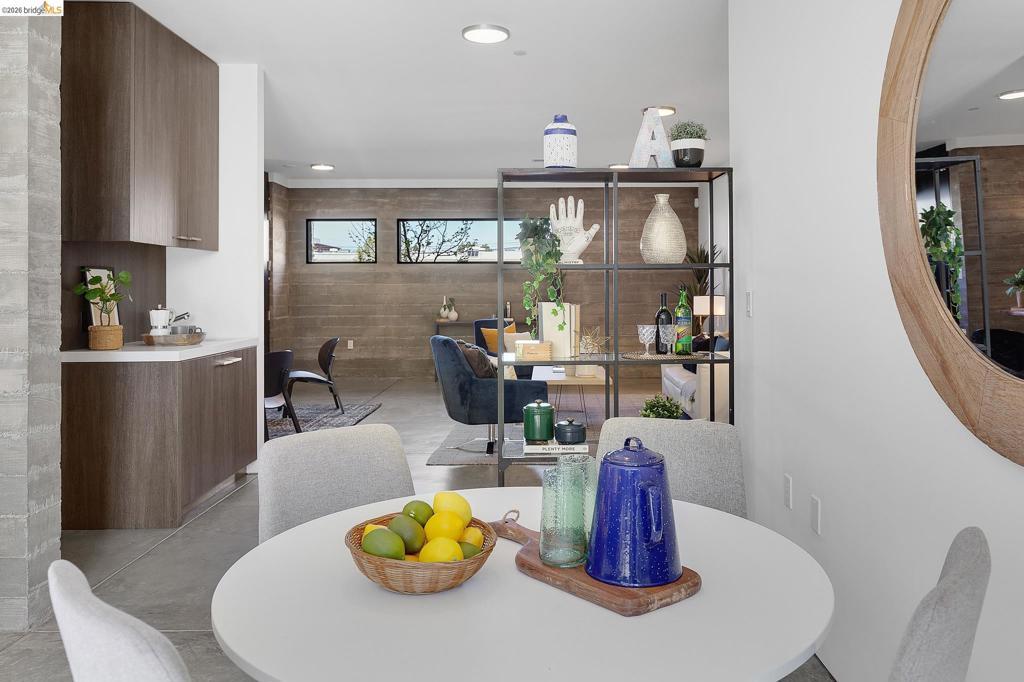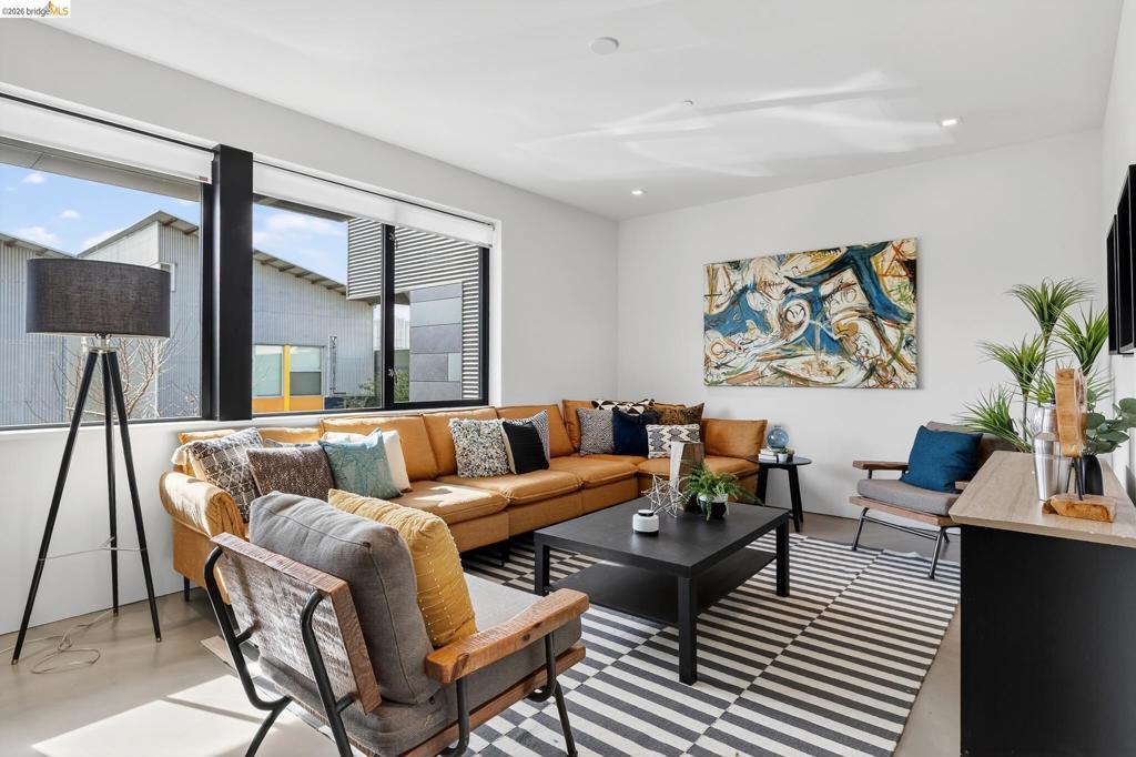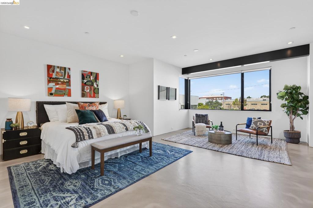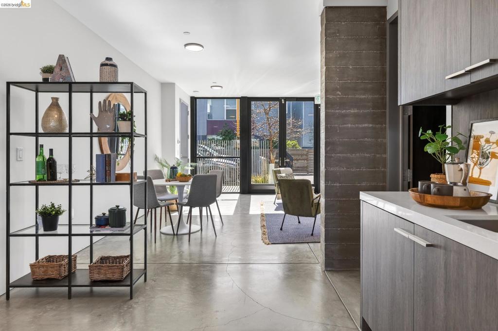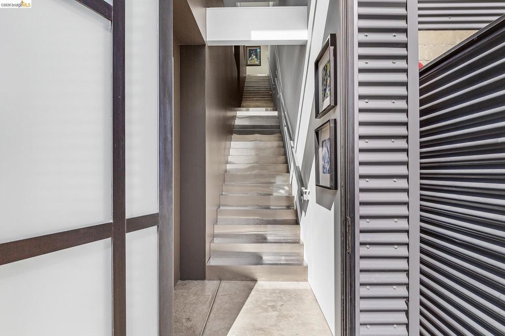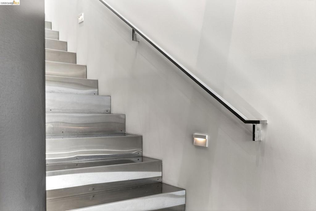 811 Folger Avenue, completed in 2020, offers an elegant interpretation of a hybrid “Live-Work” design by architect David Stark Wilson. This is an all-electric property, BESO exempt! The property has two residential floors and one office/workspace floor. Both the residential and workspace/office floors have independent heating and AC systems, all powered by a rooftop solar array. The residential floors feature 3 bedrooms and 2 bathrooms, a private front deck, and an open-plan study. The top floor has a spectacular “great room”, a dynamic kitchen/dining area/living room combination featuring a huge island, a suite of SS energy-efficient appliances, and beautiful custom windows with urban views. The office/workspace floor has a level-in independent entry, an ADA bathroom, and the counter space is plumbed for a microwave and refrigerator. The tall French doors capture the southern light, illuminating this space with bright natural light. This office space may be rented separately. The heart of the property is an unexpected stainless-steel staircase, an unexpected companion to the polished concrete floors and board-formed concrete walls. The property has two designated parking spaces (one space has an electric car charger) and is near Berkeley Bowl, shops, cafes, and mass transit.