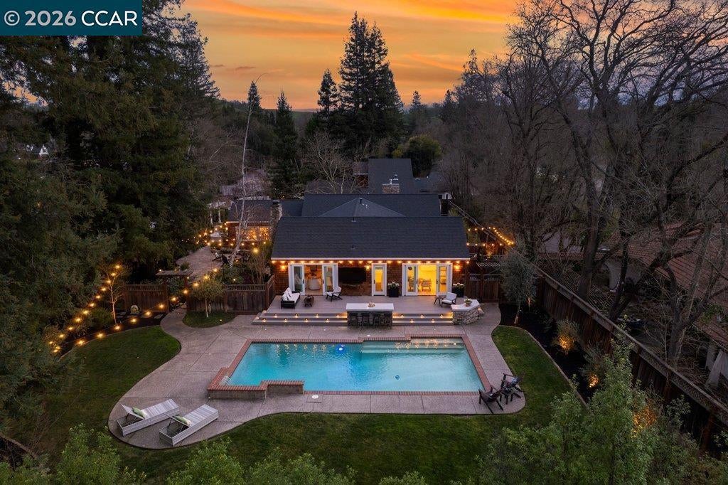 In the storied enclave of Diablo, where privacy and prestige quietly define the landscape, this masterfully crafted estate presents a rare opportunity to own a home of substance and serenity. Classic Craftsman architecture gives way to soaring interiors filled with natural light and framed garden vistas. Rich wood floors run throughout, grounding the home in warmth and refinement. Dual fireplaces anchor the living and family rooms, while expansive decks blur the line between indoors and out. At the center, a statement kitchen pairs sculptural quartzite with professional-grade Miele appliances — equally suited for intimate dinners or elegant entertaining. The primary suite is designed as a private retreat: heated floors, a spa-caliber wet room bath, and an expansive custom wardrobe evoke the feeling of a five-star resort. A secondary ensuite, two additional bedrooms, and a dedicated pool bath ensure both flexibility and thoughtful design. Outdoors, the estate unfolds into a resort-like sanctuary — sparkling pool, tranquil fountain, firelit evenings beneath the stars, and layered gardens offering both beauty and seclusion. Completing the property is a rare two-story guest residence with its own kitchen, laundry, fireplace, and private yard — ideal for extended family, executive qua