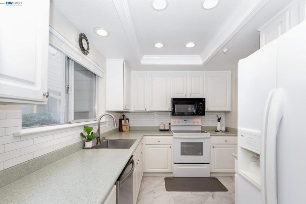 Welcome to a beautifully single-level townhome style condo in the desirable Carriage Place community. This rarely available downstairs end/corner unit offers 2 bedrooms, 2 bathrooms and 1,208 sqft of comfortable, thoughtfully designed living space. The floor plan features a spacious living & dining area filled with natural light, complemented by laminate flooring, recessed lighting, and a cozy fireplace. The modern kitchen is enhanced with updated recessed lighting, classic subway tile with ample cabinetry for storage. Two generously sized bedrooms with large closets, and the primary suite includes an en suite bathroom. The bathrooms showcase stylish finishes and built-in showers seating. Step outside to your own private patio, perfect for relaxing or entertaining. In-unit washer and dryer for your convenience. One assigned covered carport space and abundant guest parking. The low HOA dues cover water and garbage services. Ideally located just minutes from downtown Walnut Creek, Walden Park, Iron Horse Trail, and within walking distance to BART station. Don’t miss this exceptional opportunity to own a beautiful home in a prime location!