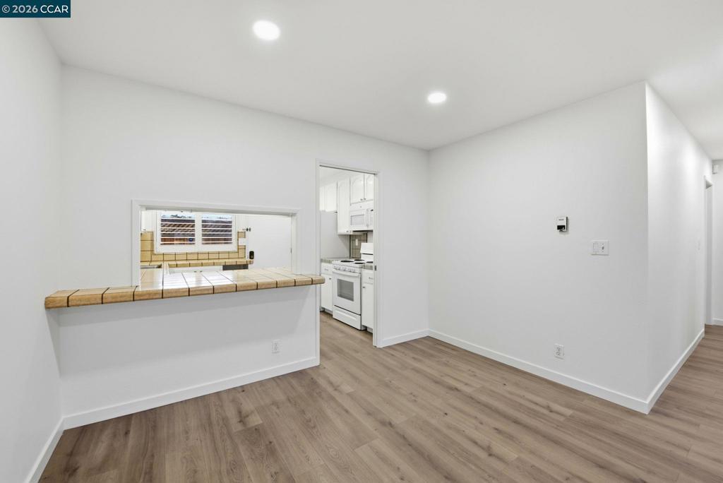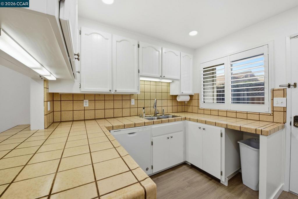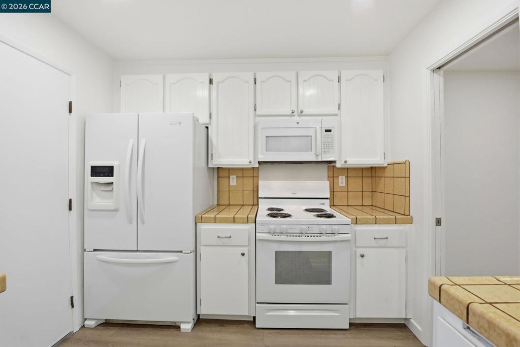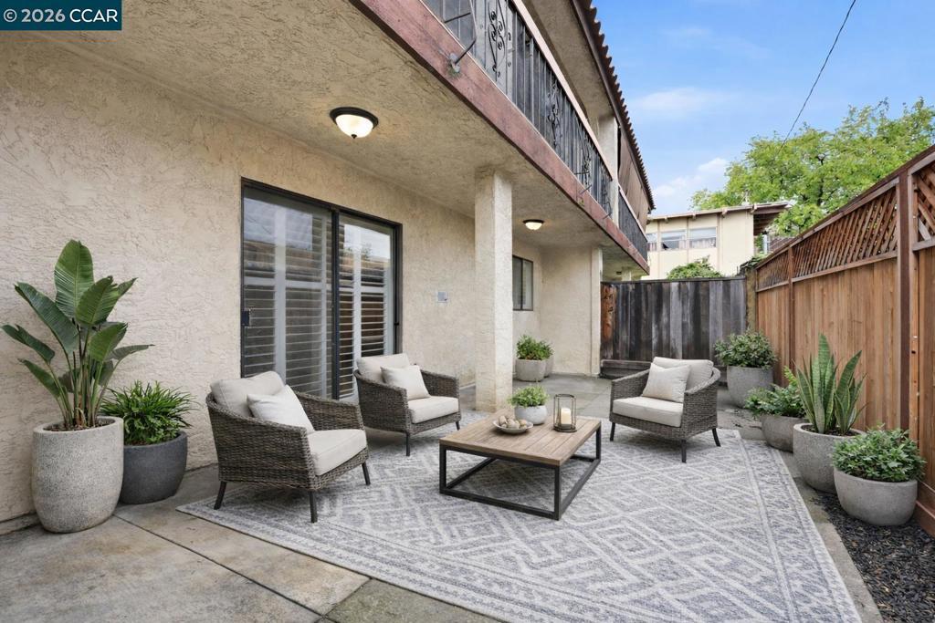 Rarely available ground-floor, well appointed single-level 2BD/2BA condo, in a small community that cares for each other. No interior stairs, tucked into a corner for added privacy. This home has a cozy wood-burning fireplace, great room, fresh interior paint throughout, and luxury vinyl plank flooring in the living, dining, kitchen, bedroom areas. Refreshed kitchen cabinetry adds a clean, updated feel. Spacious primary suite features a large walk-in closet and private en-suite bath; the second bedroom offers a generous closet with double doors, perfect for guests or a home office. Both baths are well cared for with Corian sinks and oak cabinetry. Enjoy the convenience of in-unit laundry, plantation window shutters, and a large patio for relaxing or outdoor dining, plus an additional storage closet on front patio. Bonus: detached lock-up 2-car garage for parking and storage. Prime San Leandro commute location near freeways, shopping, banks, and parks. HOA includes water, sewer, garbage & exterior maintenance.