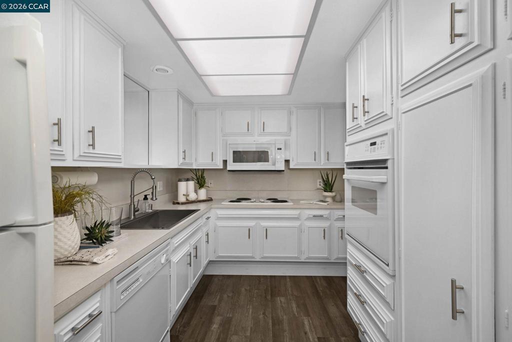 Bright, single-level Yosemite model an open floor plan. Skylights and classic plantation shutters. No stairs, durable LVP flooring, and plush carpeting, a cozy welcoming space ideal for both entertaining friends and relaxing evenings. The spacious primary suite includes a walk-in shower, mirrored closet doors. Side-by-side laundry, two bathrooms with modern finishes. Step outside to your private patio — perfect for morning coffee, gardening, or enjoying time with family and friends. Perfect for both relaxing and entertaining—in the heart of Rossmoor’s vibrant 55+ community in the East Bay. www.1129PtarmiganDr3.com
