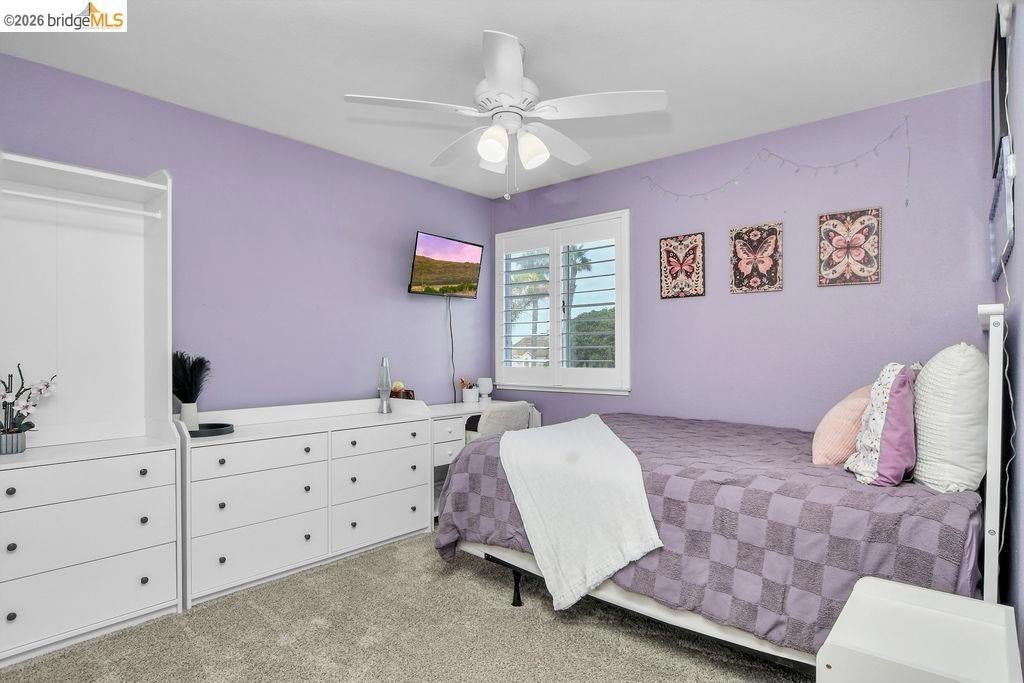 This is the ULTIMATE family home nestled in the desirable community of Discovery Bay, just minutes from Delta access. This beautifully updated residence offers the perfect blend of comfort, function, & lifestyle, including a large downstairs bedroom ideal for guests or multi-generational living. The updated kitchen features quartz countertops, white cabinetry, abundant storage, & a gas range, flowing seamlessly into the inviting family room with a cozy fireplace. Plantation shutters run throughout, adding style & durability. The main level features laminate flooring, & upstairs, the home is finished with comfortable carpeting. The spacious primary suite offers a walk-in closet, updated dual vanities, a stall shower w/ brand-new sliding glass doors & tub. The bathrooms have been tastefully updated, & a brand-new HVAC system ensures year-round comfort. Energy efficiency shines with owned solar, including 33 pigeon-proofed panels. The landscaped front & backyard create great curb appeal, while the spacious pool-sized lot offers plenty of room for entertaining or future possibilities. A standout feature is the detached bonus room in the backyard with AC, new windows & vinyl flooring, perfect for a private workspace or creative studio. Enjoy space & upgrades in one exceptional home.