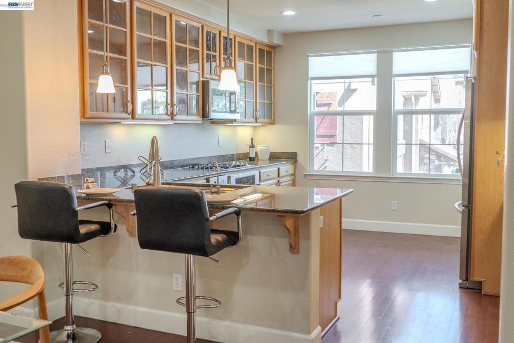 This light filled, beautifully appointed home is calling to you. Enjoy the open concept kitchen, dining and living room area which flows onto a outdoor patio creating an entertainers paradise or a quiet spot to enjoy a glass of wine after a long day. Hardwood floors, granite counter top and beautiful wood cabinets elevate the space. An attached tandem 2 car garage provides direct access to your home and downstairs laundry. The community clubhouse and patio with outdoor picnic tables provide additional entertainment space. Centrally located and a 3 minute walk to CalTrain. Downtown Sunnyvale is just a short drive to many restaurants, Whole Foods, Target and more entertainment possibilities. Close to major Bay Area tech companies such as Amazon, Google, Meta, Nvidia, the Apple Campuses & more. This lovely home won't last long – don't waste another minute – come home to peace.
