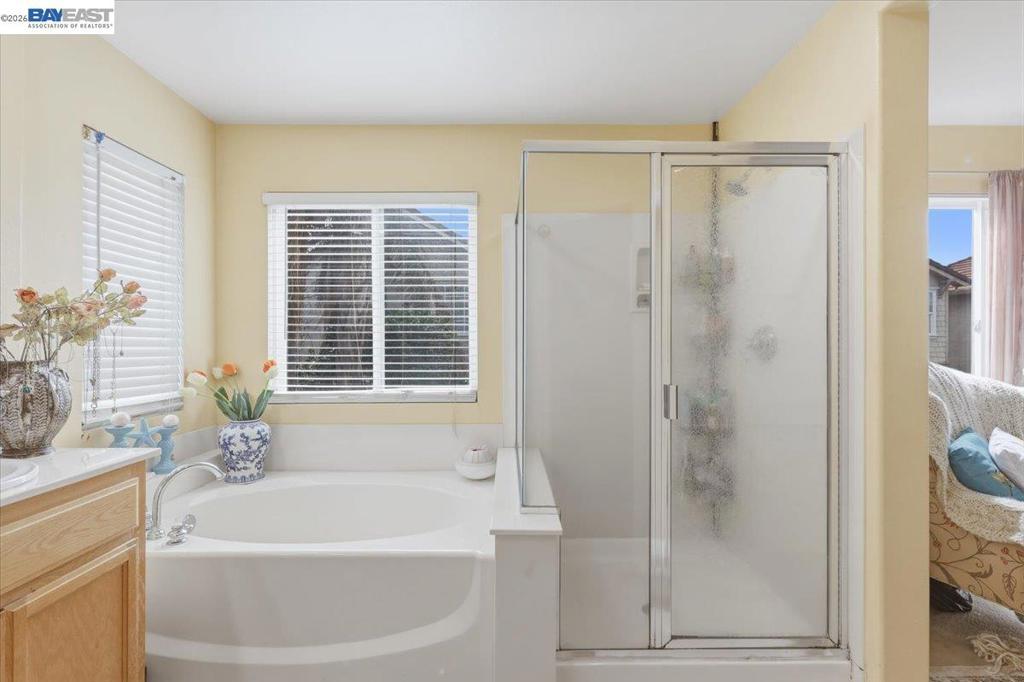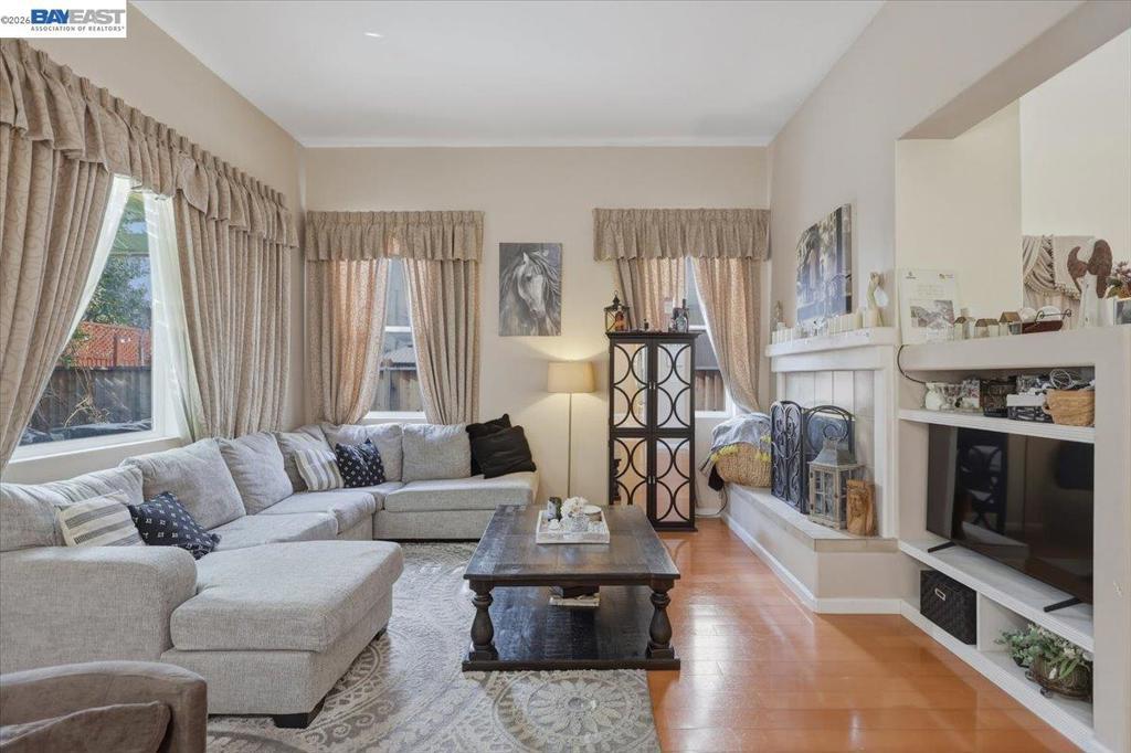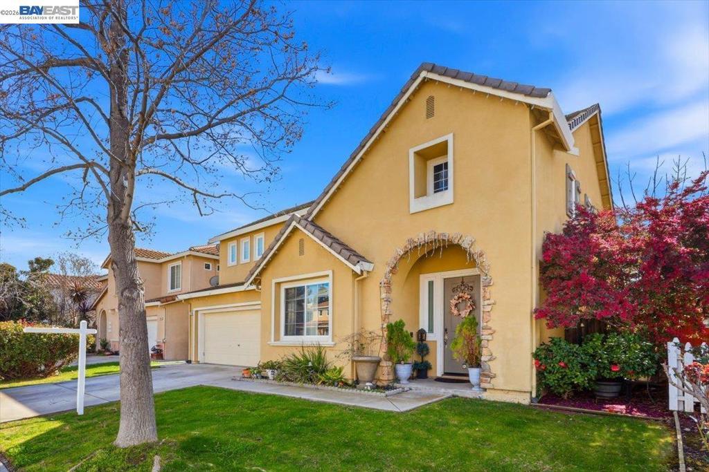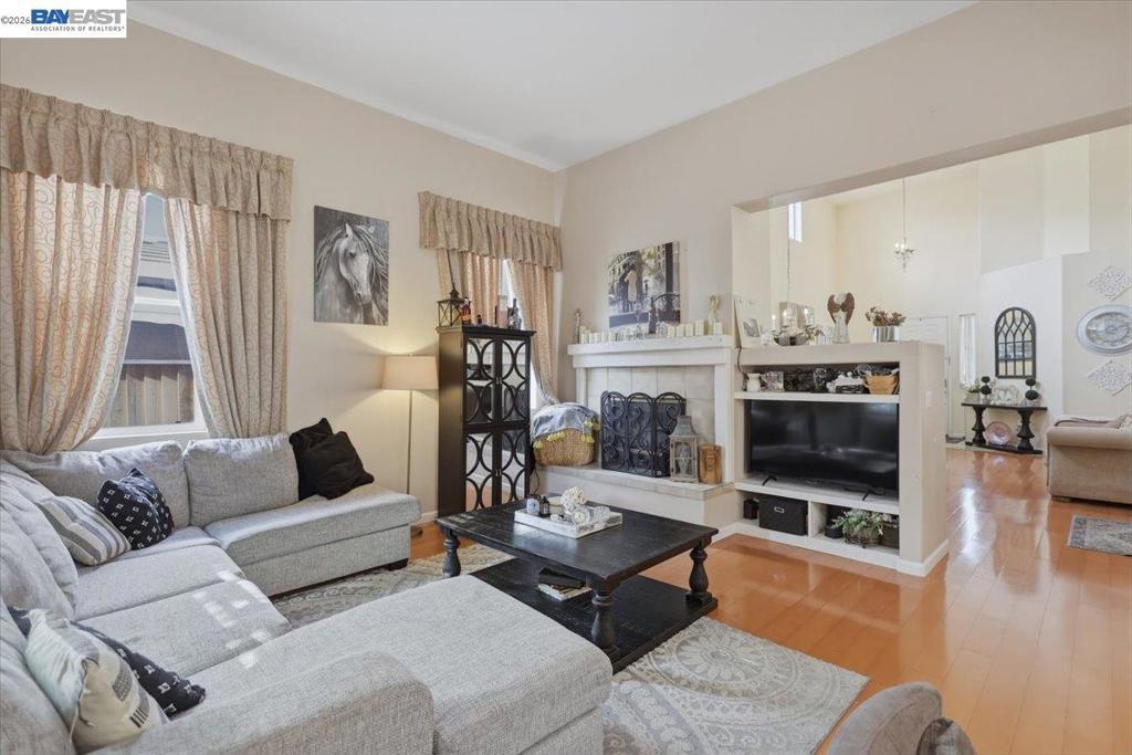 Welcome to this impressive two-story home offering approximately 2,400 sq ft of well-designed living space. Featuring 4 bedrooms and 3 full bathrooms, this residence provides the perfect blend of comfort, functionality, and style. The main level includes a desirable bedroom and full bathroom — ideal for guests or multi-generational living. Step into the grand living room with soaring high ceilings, creating a bright and open atmosphere. The inviting family room features a cozy fireplace, perfect for relaxing evenings and gatherings. 2.5 garage spaces provide more flexibility for storage or a private gym. The spacious kitchen is designed for both everyday living and entertaining, complete with a center island, ample cabinetry, and generous counter space. Upstairs, you’ll find generously sized bedrooms, including a private primary suite offering comfort and retreat. Enjoy the large backyard with plenty of space for outdoor entertaining, gardening, or designing your dream outdoor oasis. Steps away from the beautiful neighborhood park! Close to schools, shopping, easy access to Hwy 205 and 580. This beautiful home offers space, warmth, and versatility — an exceptional opportunity you won’t want to miss!