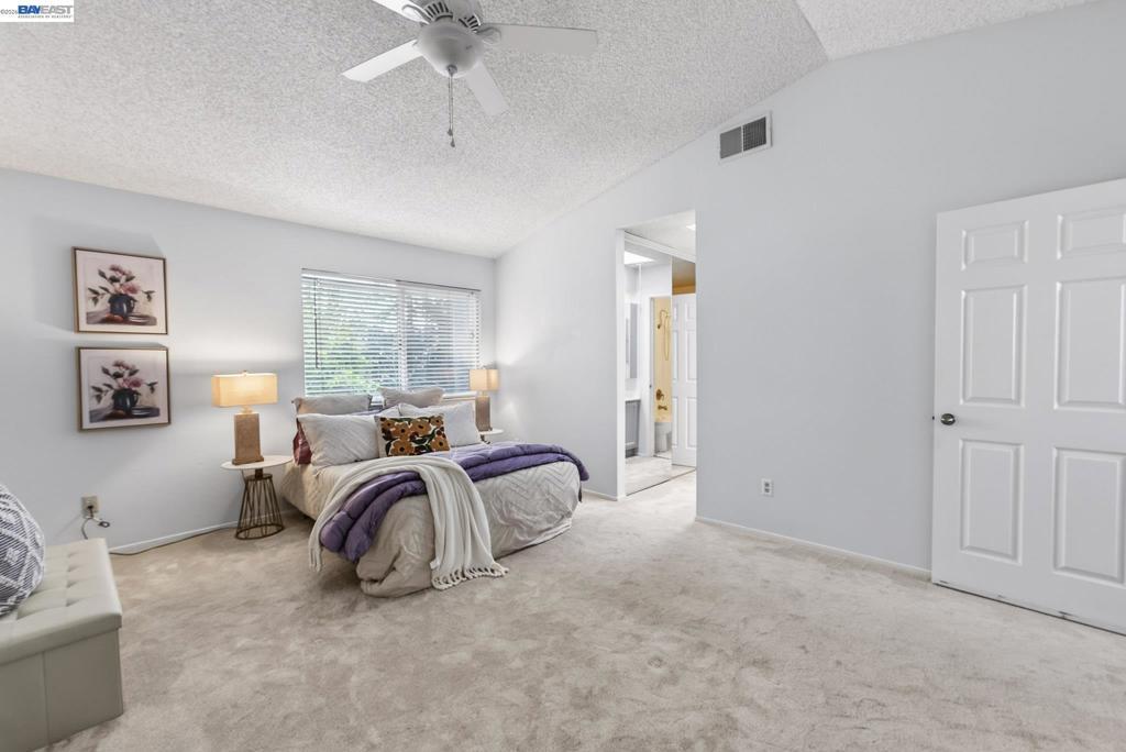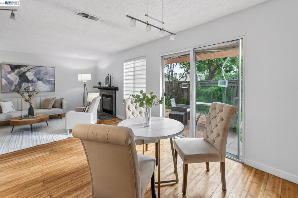 Welcome to 97 Deer Run Circle, a beautifully updated 2 bedroom, 2.5 bathroom townhome in the heart of San Jose offering 1,196 sq ft of comfortable living space. The bright living room features wood flooring, a cozy fireplace, and sliding glass doors leading to a private fenced patio with a retractable awning-perfect for relaxing or entertaining. The open concept dining area connects to a refreshed kitchen with olive green cabinetry, white tile countertops, and gas appliances. A dedicated laundry room provides high efficiency, front-loading machines and convenient overhead storage. Upstairs, the spacious primary suite boasts vaulted ceilings and an en-suite bath with a double-sink vanity, while the second bedroom offers ample light and built-in closet organization. The complex is well maintained and pet-friendly, featuring a resort style pool and greenbelts. The home also provides quick access to Highways 101, 280, 680, and 880, as well as shopping, dining, and major tech employers throughout San Jose. Move-in ready and ideally located in the heart of Silicon Valley.