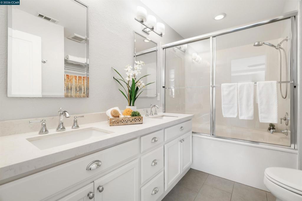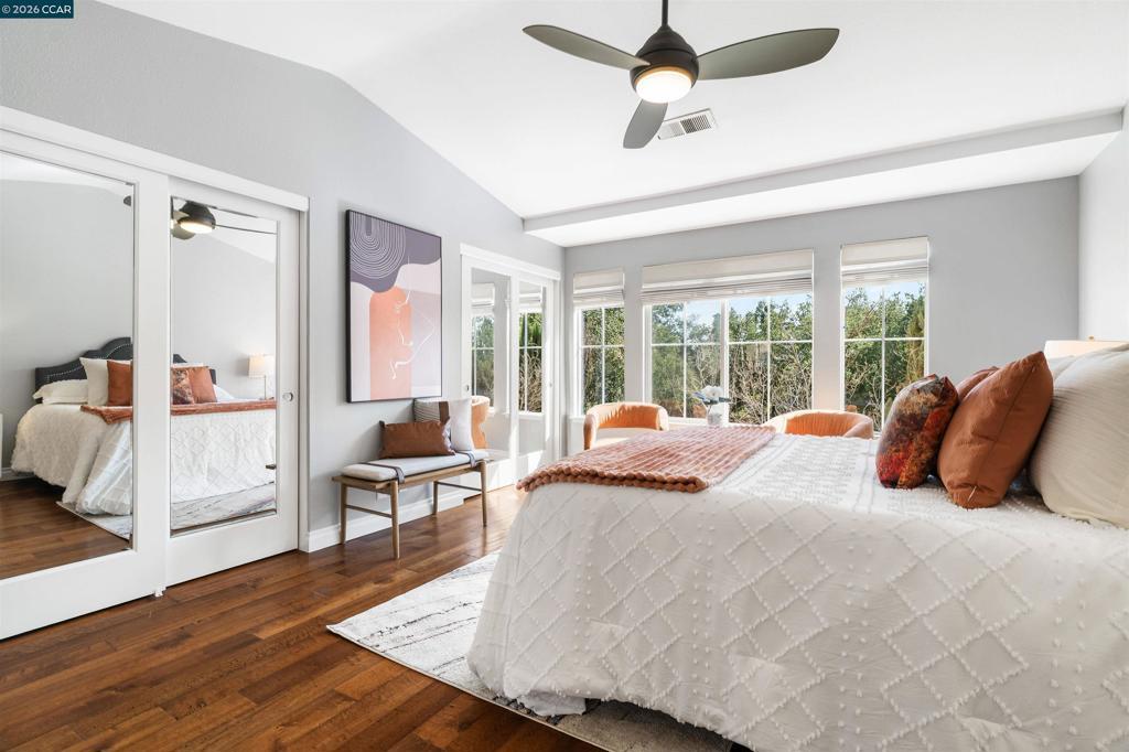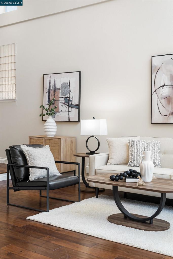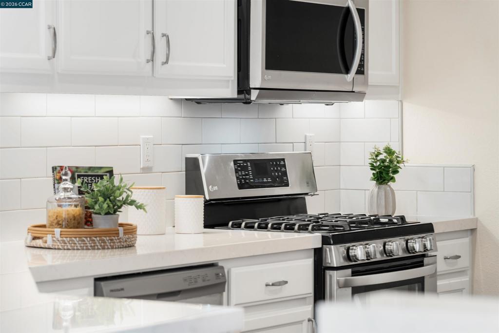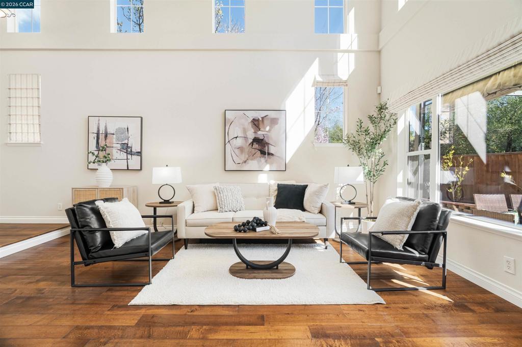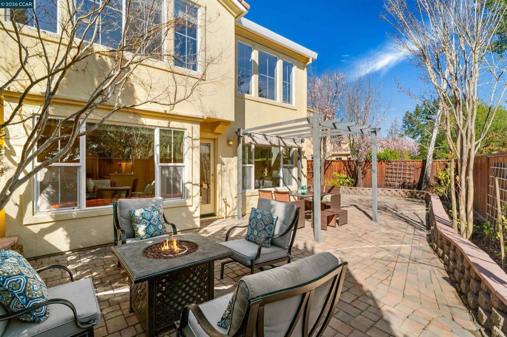Nestled in the conveniently located and desirable Cedar Bridge community, this end-unit townhouse not only lives like a single-family home, it is walking distance to award winning San Ramon Schools including Coyote Creek Elementary. The home is situated on a PREMIUM LOT with inviting private rear and side yards which back to open space (no rear neighbors). The extended driveway provides additional parking outside of the attached two-car garage. Ample guest parking is just a few steps away. High ceilings in the entry and living room greet you as you enter the home. The living room features a gas fireplace, a half bath and an array of windows providing an abundance of natural light. The remodeled kitchen features white cabinets, solid stone counter tops, subway tile backsplash, walk-in pantry, counter seating and high-end LG SS appliances including a gas range. The dining area has a built-in bench with storage and access to the relaxing backyard. The baths feature white cabinets, solid stone counter tops and tile floors. Wonderful gleaming hardwood floors throughout. Closet organizers in bedrooms. The large yard features upgraded landscaping and pavers. Community amenities include a pool, front landscaping and exterior maintenance. Convenient to parks, trails and City Center.