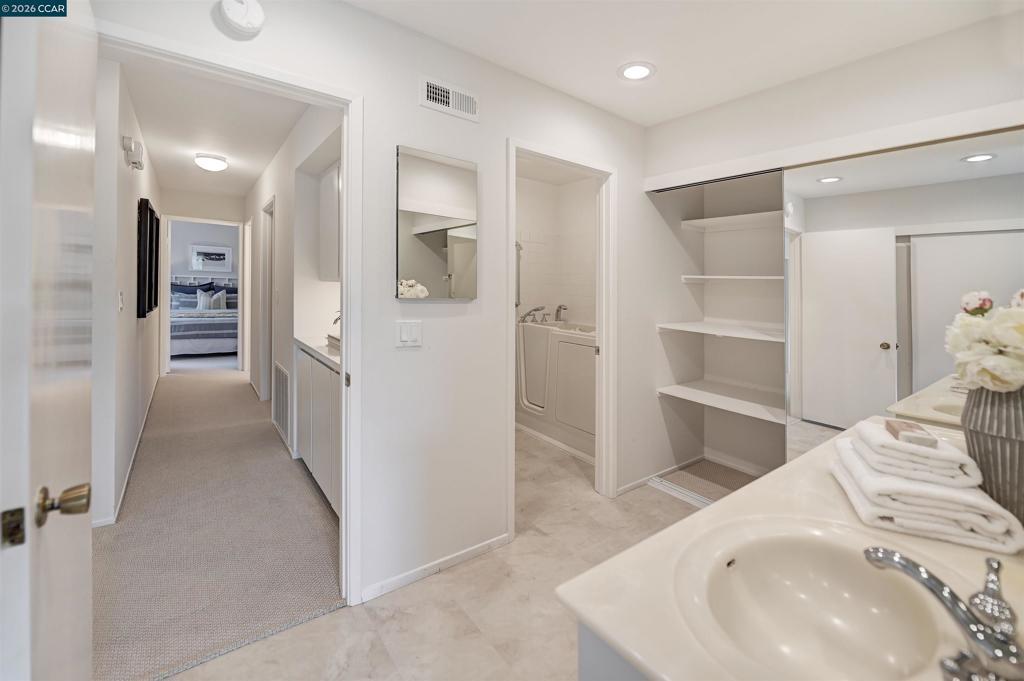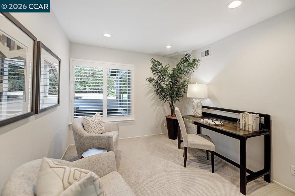 The minute you enter this charming home you are embraced by an abundance of natural light and beautiful vista views of lush landscape and rolling hills. Some of the fine features you will value is the open floorplan with each room easily flowing from one to the other, kitchen has been nicely updated along with stainless steel appliances, recessed lighting, volume ceilings, designer blinds, new plush carpet, new custom blended paint, newer HVAC, dual pane windows, mirrored closet doors, washer & dryer just to mention a few wonderful details this home has to offer. Value of this home is also increased by its perfect location with a short walk to many of Rossmoor’s 5-Star amenities; Golf Course, Creekside Restaurant, Event Center, Stanley Dollar Clubhouse & Pool and many more creating a healthy lifestyle. This is a home you will enjoy for years to come! Welcome Home !