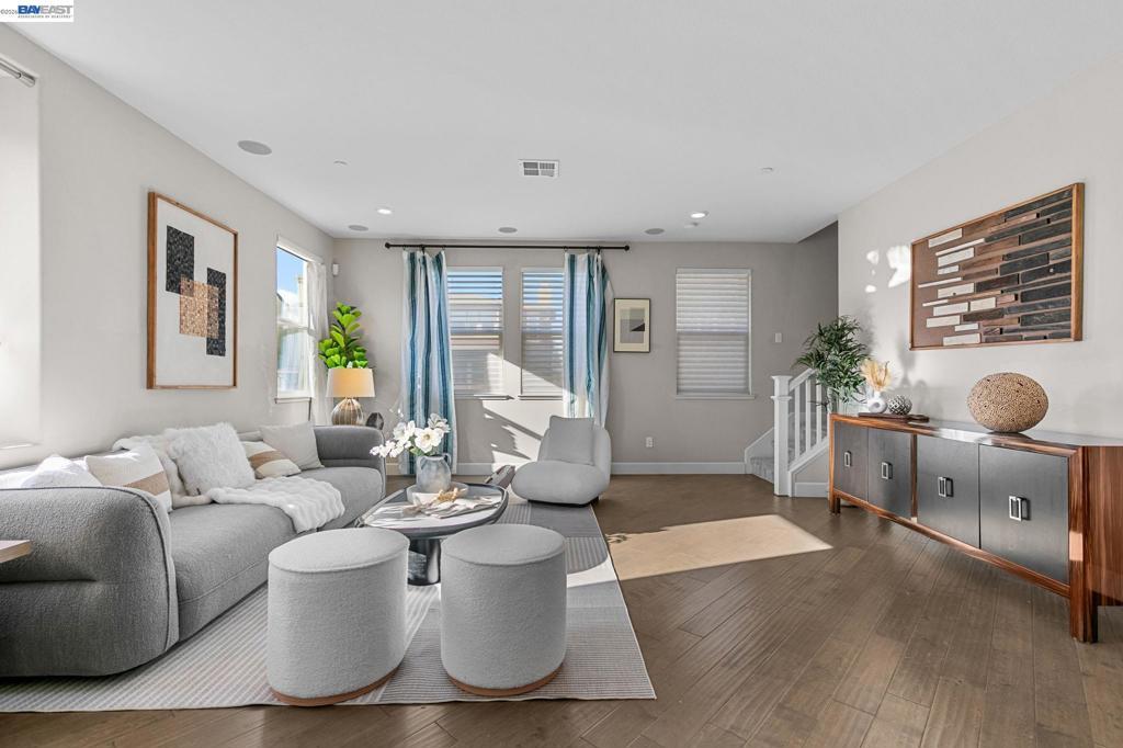 One of the most desirable and spacious floor plans in the entire community! This former model home offers approximately 2,100 sq ft of beautifully designed living space, along with nearly $100K in premium location value and upgrades. The entry level includes a private bedroom with its own full bathperfect for guests, multigenerational living, or a dedicated home office. On the main floor, the open-concept layout centers around a stylish gourmet kitchen appointed with quartz countertops, stainless steel appliances, and a modern semi-island. The kitchen flows effortlessly into the dining and living areas, creating an ideal environment for both everyday comfort and entertaining. Upstairs, the primary suite offers a peaceful retreat with a spa-inspired bathroom, dual vanities, and an oversized walk-in closet. The location is truly exceptional. Youre within walking distance to BART, neighborhood parks, golf courses, Mercado Park, and the newly developed Market Park Plaza with Safeway, CVS, and more. Plus, youre just minutes from Costco, Ranch 99, H-Mart, and major commuter routes including 101, 880, and 680, making travel throughout the Bay Area incredibly convenient. Opportunities like this are raredont miss your chance to make this impressive home yours!