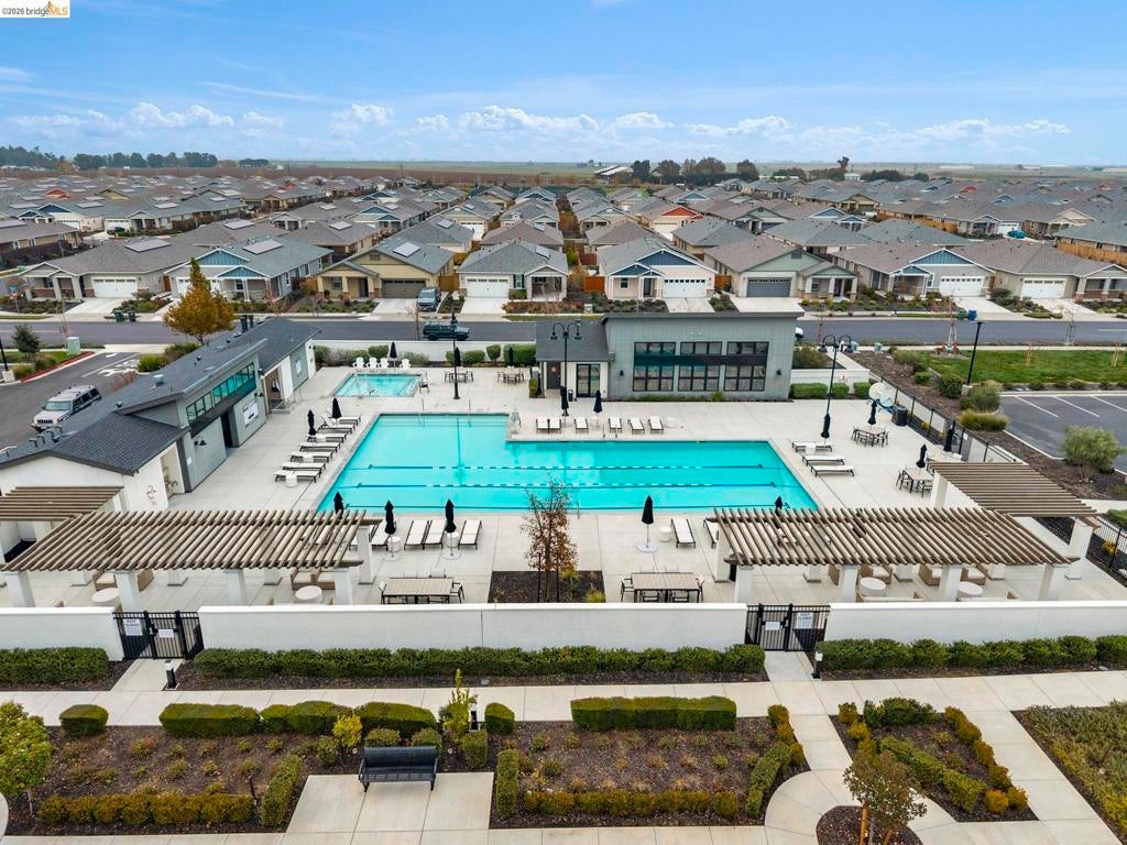 Located on a corner lot in the Summit at Liberty 55+ community, this well-designed 3-bedroom, 2-bath home offers 1,837 square feet of comfortable living space. The kitchen features granite countertops, modern white cabinetry, Whirlpool appliances, and recessed lighting. The open living area includes a ceiling fan and has access to the backyard patio. Bedrooms are carpeted, with tile flooring in the bathrooms and laundry room. Blinds are installed throughout. Enjoy the covered, lighted patio, a full cement walkway surrounding the backyard, and landscaped front and side yards. There is a 2 car garage with a tandem area, providing additional space for storage. This home has a front porch, and the Solar is owned! This 55+ community offers a variety of amenities, including a clubhouse and gathering barn for social events, tennis and pickleball courts, a pool and spa, and a fitness room. Welcome Home!