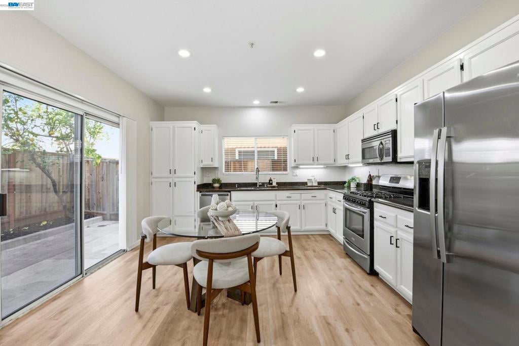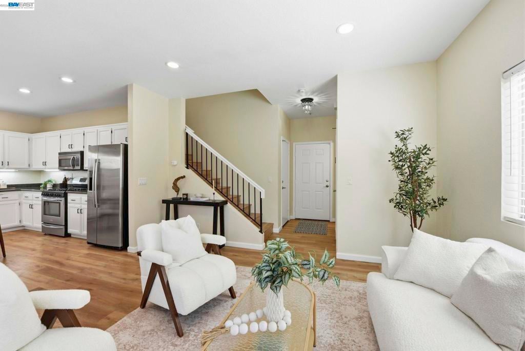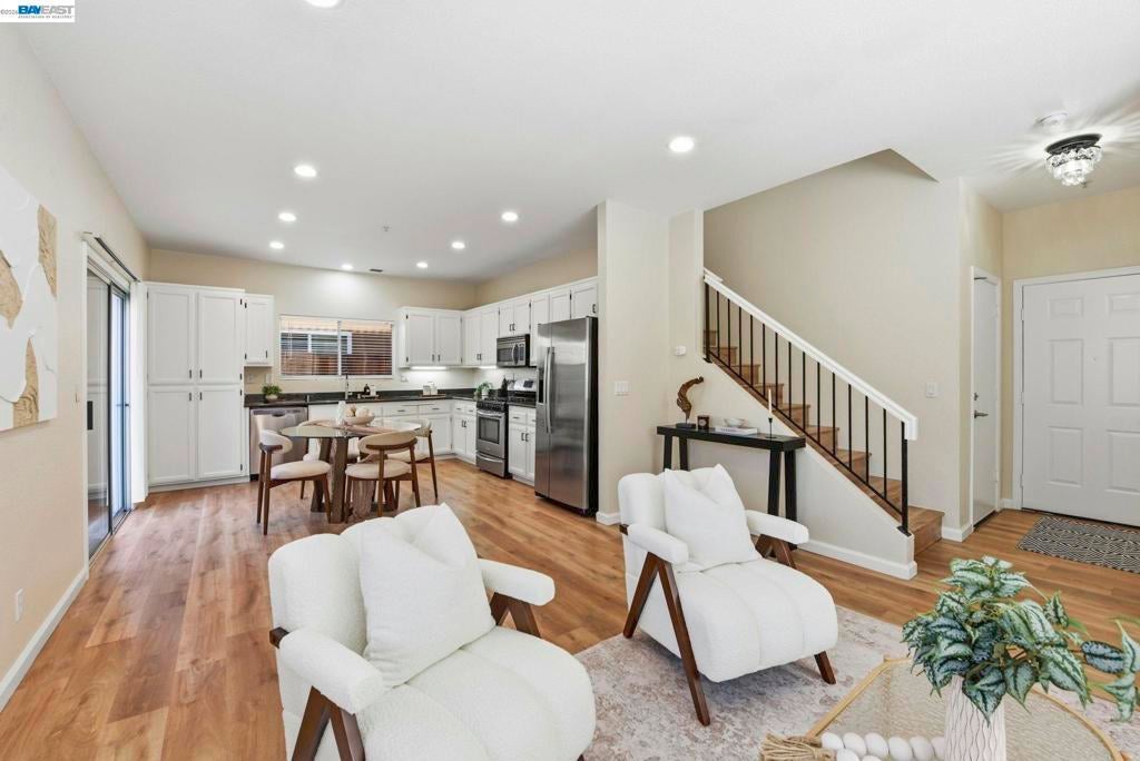 Welcome to this beautifully updated, move-in ready 3-bedroom, 2.5-bath home. Offers 1,344 sq ft of light-filled living space with thoughtful upgrades throughout. The main level features an open-concept living & dining area that flows seamlessly into a remodeled kitchen complete with granite countertops, under-cabinet lighting, & stainless steel appliances. Enjoy fresh interior paint, new luxury vinyl plank flooring, recessed lighting, dual-pane windows, and central heating & A/C for year-round comfort. A convenient half bath and laundry area complete the first floor. Upstairs, you’ll find three spacious bedrooms, including a comfortable primary suite. Additional highlights include an attached two-car garage with epoxy flooring and included washer & dryer. Step outside to a low-maintenance private backyard, ideal for relaxing or hosting guests. Located in a gated community with a very low $175 HOA fee, residents enjoy access to a community park & playground. Excellent commuter location with easy access to I-880 & the Dumbarton Bridge (Hwy 84), & just minutes from shopping, dining, and entertainment at Union Landing, Target, Century Theatres, & Union City Bart. A fantastic opportunity to own a turnkey home in a prime location. Open House Saturday/Sunday 1-4 PM.