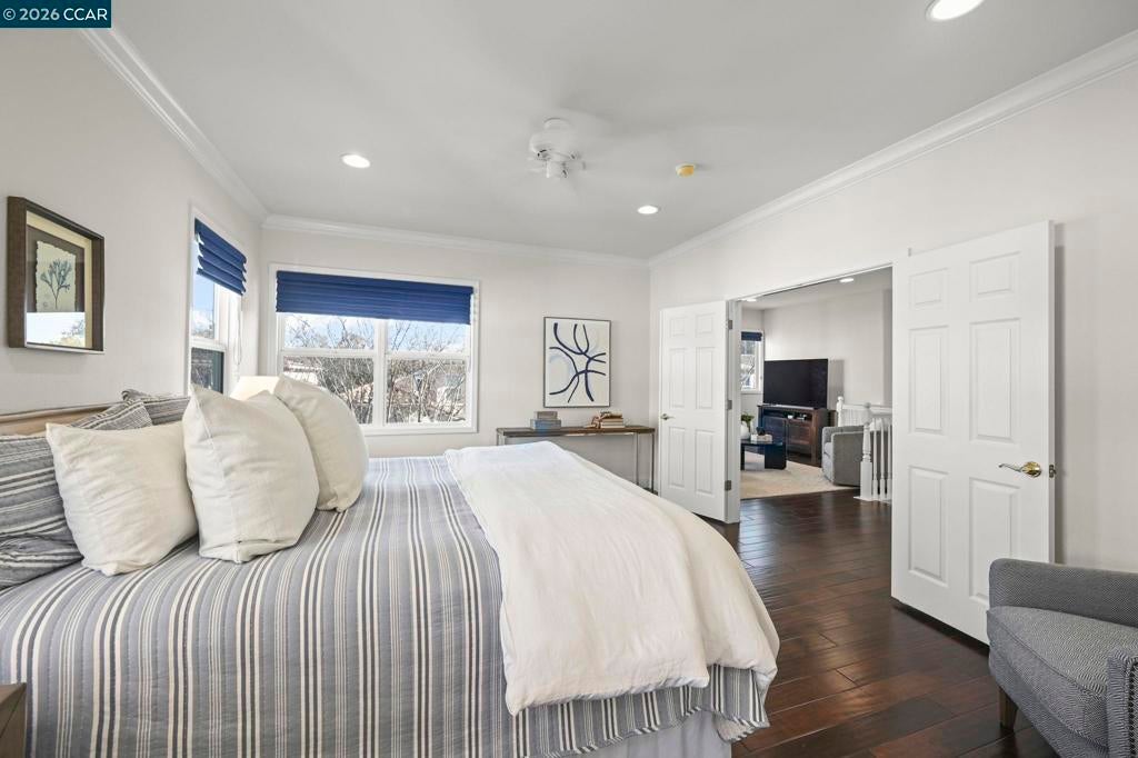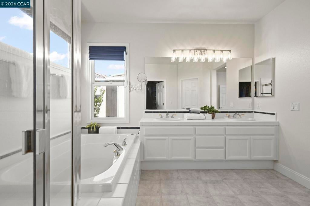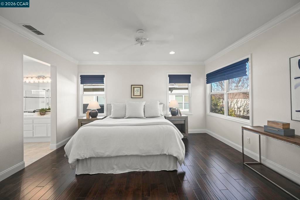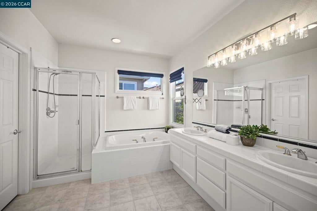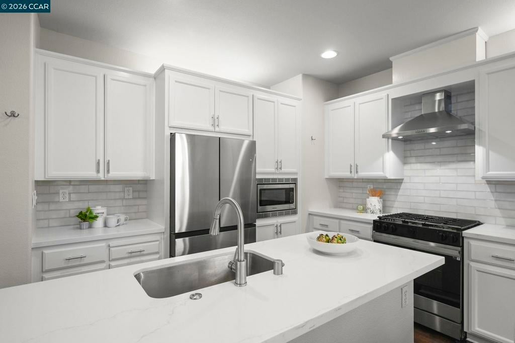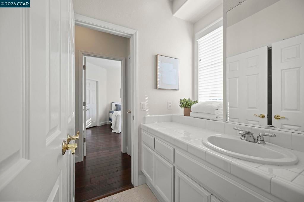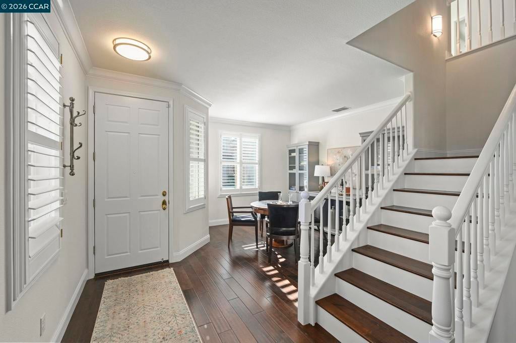 Must see, beautifully appointed corner-lot residence at The Orchards offers 3 bedrooms plus a versatile loft (4th bedroom option) and 2.5 baths, showcasing a spacious open-concept floor plan designed for both comfort and style. The HOA maintains the front yard landscaping, providing a polished exterior with low-maintenance living. The home features numerous upgrades throughout, including quartz kitchen countertops, stainless steel appliances, engineered hardwood floors, a refaced fireplace, vinyl shutters and a fresh coat of interior paint. The kitchen flows effortlessly into the family room, enhanced by a center island, engineered hardwood flooring, and refined finishes that create a warm yet sophisticated ambiance. The spacious primary suite serves as a true retreat, featuring dual vanities, a sunken soaking tub, a separate stall shower, and a generous walk-in closet. Ideally located near top-rated schools within the SRVUSD, this home also offers convenient access to freeways, shopping, and dining. Enjoy close proximity to the vibrant San Ramon City Center, with its upscale restaurants, boutique shops, and community amenities—perfectly blending comfort, convenience, and lifestyle.