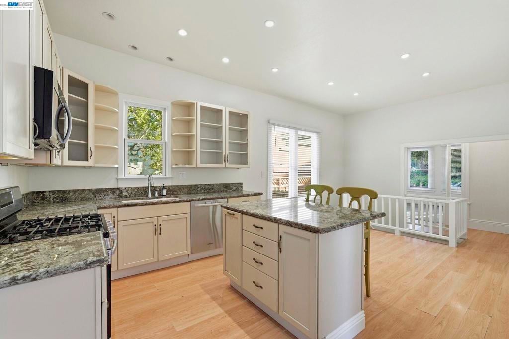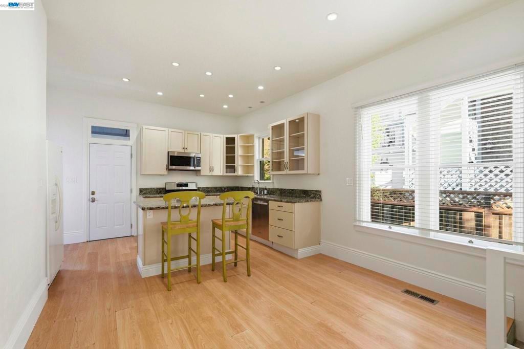 Walk to charming downtown Point Richmond from this vintage home filled with character and timeless appeal. High ceilings, beautiful wood flooring, and abundant natural light create a warm and inviting atmosphere throughout. The open kitchen offers a welcoming space for both everyday living and entertaining, and the property includes an on-site washer and dryer for added convenience. The flexible floor plan features two bedrooms and one bath upstairs. Downstairs, a private one bedroom/one bath suite with a separate entrance includes an epic sun room overlooking the backyard—an incredible light-filled space perfect for guests, extended living, a home office, or your own personal retreat. Enjoy the best of the Point Richmond neighborhood, known for its quaint village atmosphere, locally owned shops and restaurants, waterfront trails, and vibrant community events. Just minutes away are the community pool, Keller Beach, and Miller/Knox Regional Shoreline, where you can enjoy sandy beaches, picnic areas, open space, and sweeping Bay views. Experience the perfect blend of small-town charm, outdoor recreation, and Bay Area convenience right outside your door.