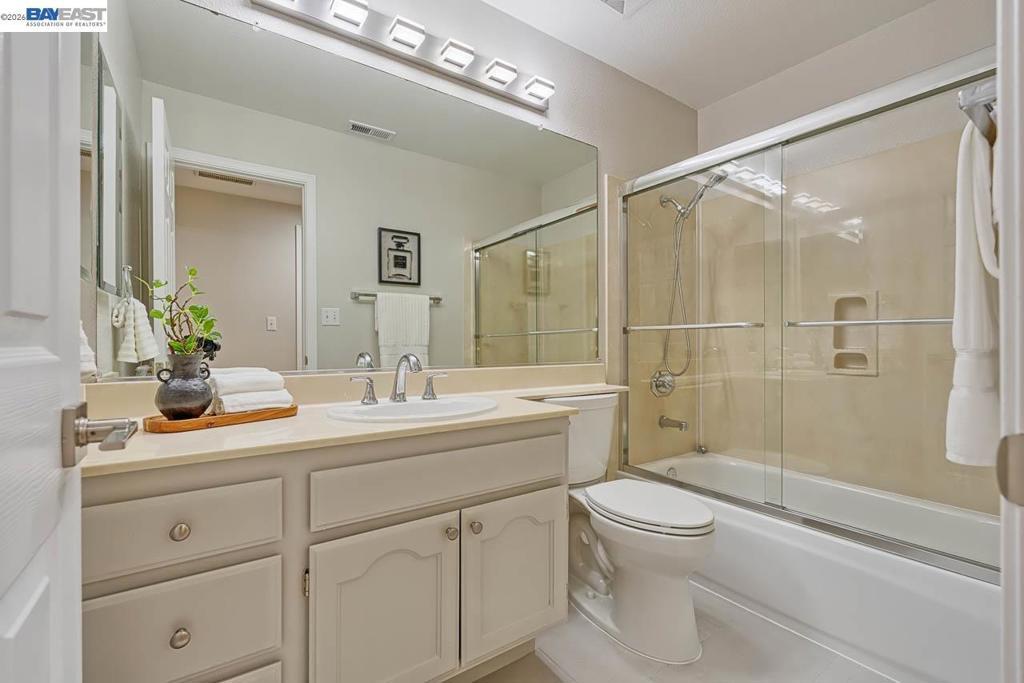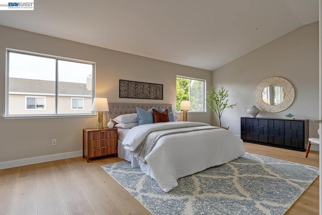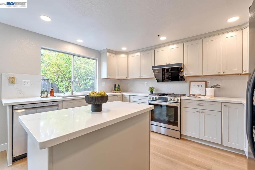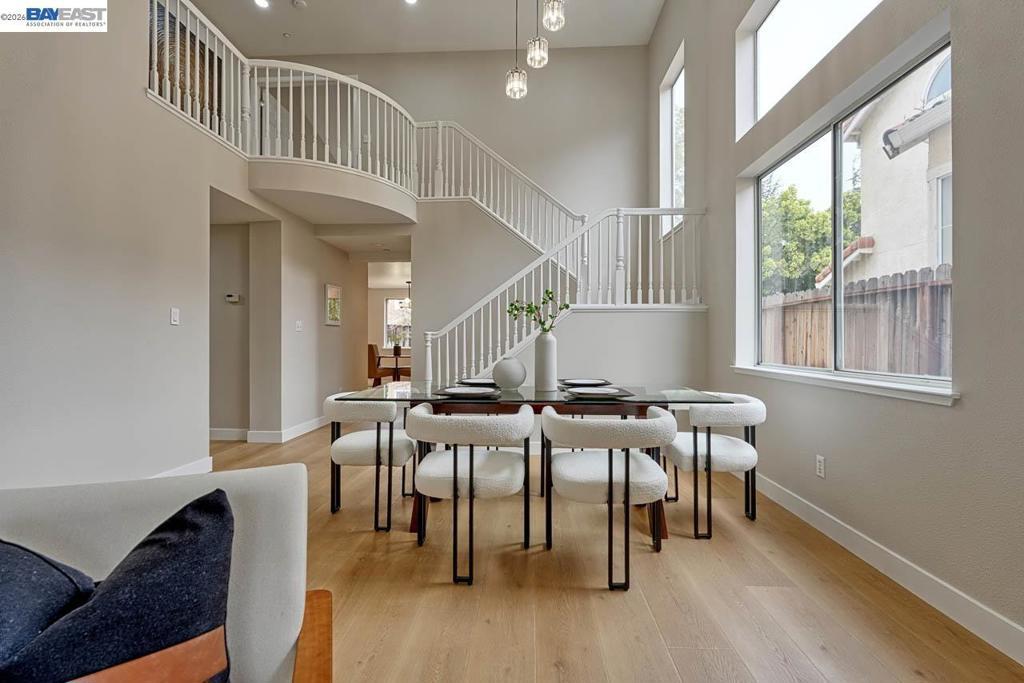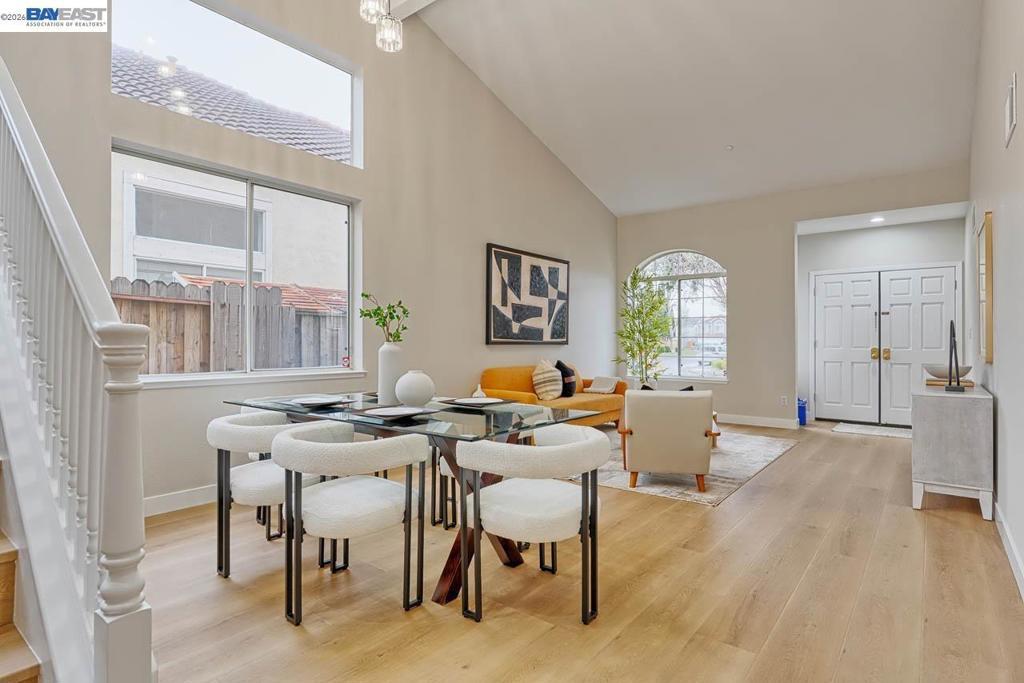 Welcome to this stunning 5B/3B home located in the highly desirable Ponderosa Landing community of Union City. This beautiful home offers both style and functionality. The formal living/dining rooms showcase soaring ceilings and elegant new light fixtures. A convenient bedroom and full bathroom on the first floor are perfect for guests or extended family. The spacious kitchen features newer SS appliances, updated cabinetry, quartz countertops, a built-in exhaust fan, 5-burner gas stove, newer sink & faucet. The kitchen flows seamlessly into the breakfast nook and family room, highlighted by a cozy gas fireplace. Upstairs, the expansive primary suite boasts a vaulted ceiling, large sun-filled window, and a luxurious en-suite bathroom complete with a sunken tub, glass-enclosed standing shower, and double-sink vanity. Additional upgrades include newer light fixtures, recessed lighting, new laminate flooring throughout, fresh interior/exterior paint, central heating/AC. The private backyard with fruit trees, offers a serene setting for relaxation or gatherings. Conveniently located near Union Landing, a variety of shops and restaurants, top-rated Delaine Eastin schools, I-880/84/92 and major tech employers including Meta Campus. 360VT https://tinyurl.com/345ewz3a