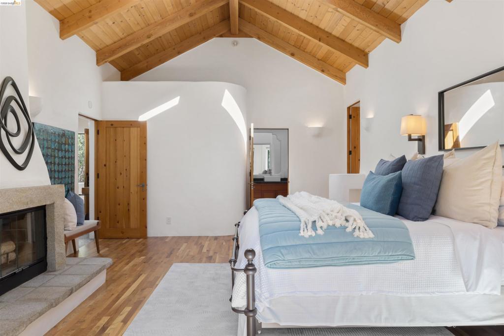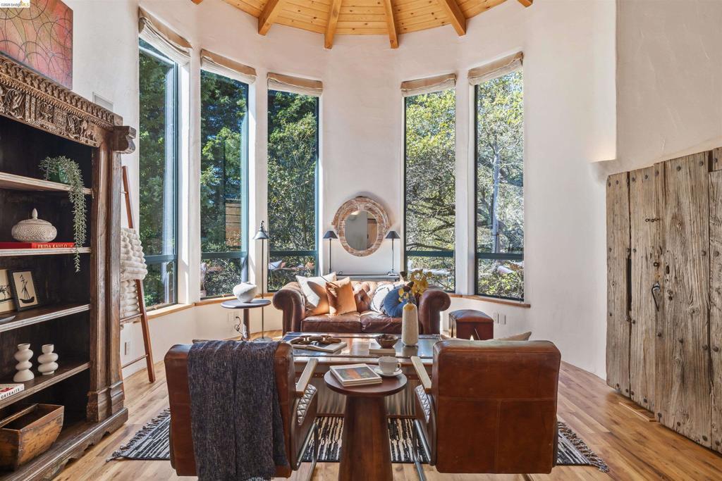 1102 Grandview Dr. is a sunlit contemporary Spanish/Med sanctuary perched above Vicente Creek. Designed & built by famed local architect Jim Servais this enchanting “treehouse” retreat sits on a large, wooded parcel. This property delivers rare privacy, peaceful outlooks & a true sense of escape. Inside, the home balances warmth & style with artistic touches w/ a distinctive blend of vintage character & modern updates—including refreshed baths & rebuilt decks. The primary suite is a private hideaway, featuring cathedral ceilings, skylights, large walk-in closets & a cozy window alcove. Enjoy direct, easy entry from the garage into the eat in kitchen, then flow out to the expansive, upper deck. This level also features hand carved beams & columns in the dining room & a grand double-height vaulted ceiling living room. Artisan woodwork, plasterwork, copper lighting and handrails emphasize the handmade qualities of this stunning build. Downstairs, a flexible second living level adds two additional bedrooms and baths-one ideal as an alternate primary ensuite—plus a cozy family room & a show stopping lower deck. With its own entry from ample lower parking, this level can serve many purposes. Magical outdoor vignettes, a bubbling creek, calming privacy-Claremont Hills at its best.