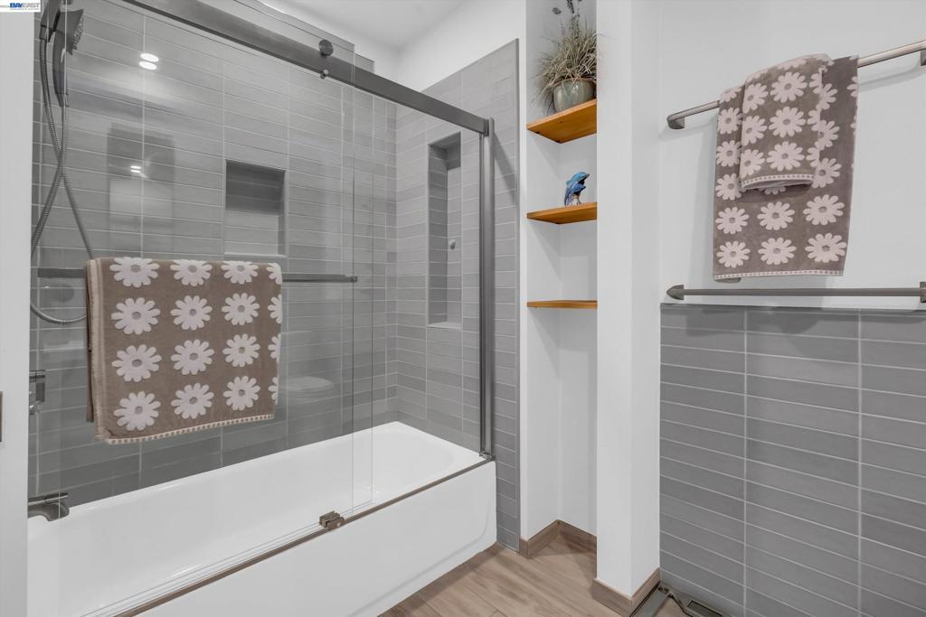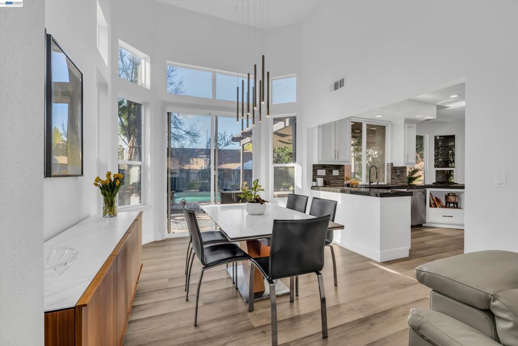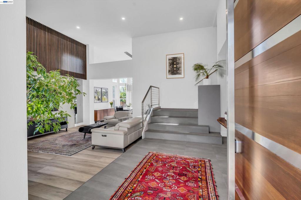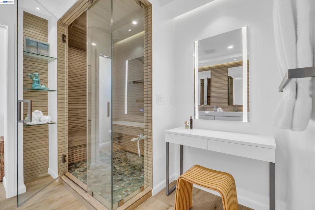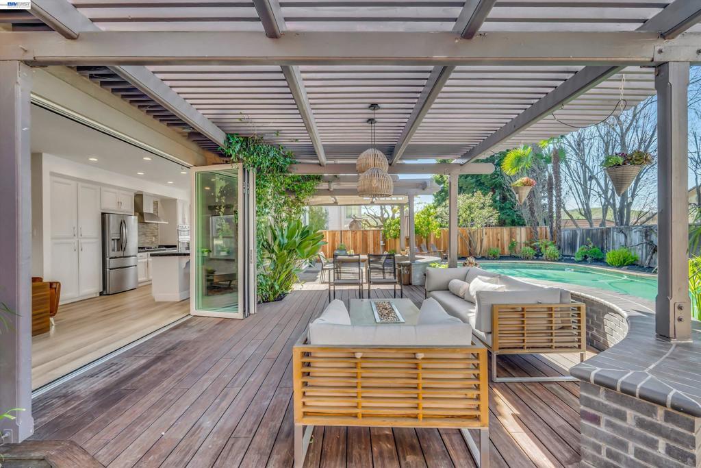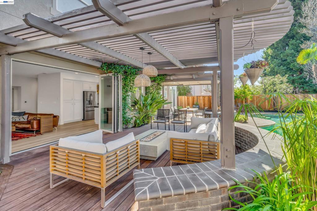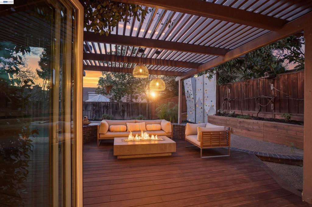 From the moment you arrive at the custom modern front door, this home feels special. Each spring, the pink magnolia tree blooms in the front yard. A beautiful reminder of the seasons changing and memories made here. The backyard has been a true sanctuary. Rows of grapevines along the fence add charm, while the trellis creates a shaded setting for long dinners, celebrations, and quiet morning coffee. The pool and climbing wall have brought endless laughter and gatherings, making the space one that naturally invites connection. Inside, the main living area was redesigned in 2022 with custom wood paneling and accent mirrors, creating a space that feels both architectural and warm. The updated rectangular fireplace with designer Porcelanosa tiles ties into the feature wall, while folding doors open to the backyard for seamless indoor-outdoor living. The downstairs kitchen and bathroom renovation in 2016 introduced high-end finishes and mood lighting that elevate everyday living. Upstairs, the renovated bathrooms offer a private retreat, especially the primary suite with its steam sauna, custom lighting, and built-in shelving. With recessed lighting and sleek modern window coverings throughout, the home maintains a clean yet welcoming feel. Ready for its next chapter.