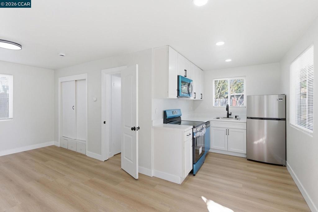 Completely renovated and delivered fully vacant, this unique property offers a rare opportunity for flexible living in one of Stockton’s established neighborhoods. The main residence features 3 bedrooms and 2 bathrooms with a bright functional layout, updated with new luxury flooring, fresh interior and exterior paint, modern lighting, and a fully refreshed kitchen with new cabinetry, countertops, and appliances. Bathrooms have been updated with contemporary finishes, creating a clean move-in-ready space. In addition to the main home, the property includes a detached secondary living space with kitchenette, bathroom, laundry, and private entrance, offering exceptional versatility for extended household living, guests, workspace, or potential rental use. Situated on a spacious lot with driveway access and outdoor space, this property provides a rare combination of two separate living areas on one parcel, ideal for multigenerational living or buyers seeking additional flexibility. Move-in ready and thoughtfully improved, opportunities like this are difficult to find in today’s market. Buyer to verify all square footage, permits, and intended uses to their satisfaction.