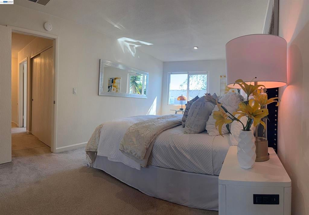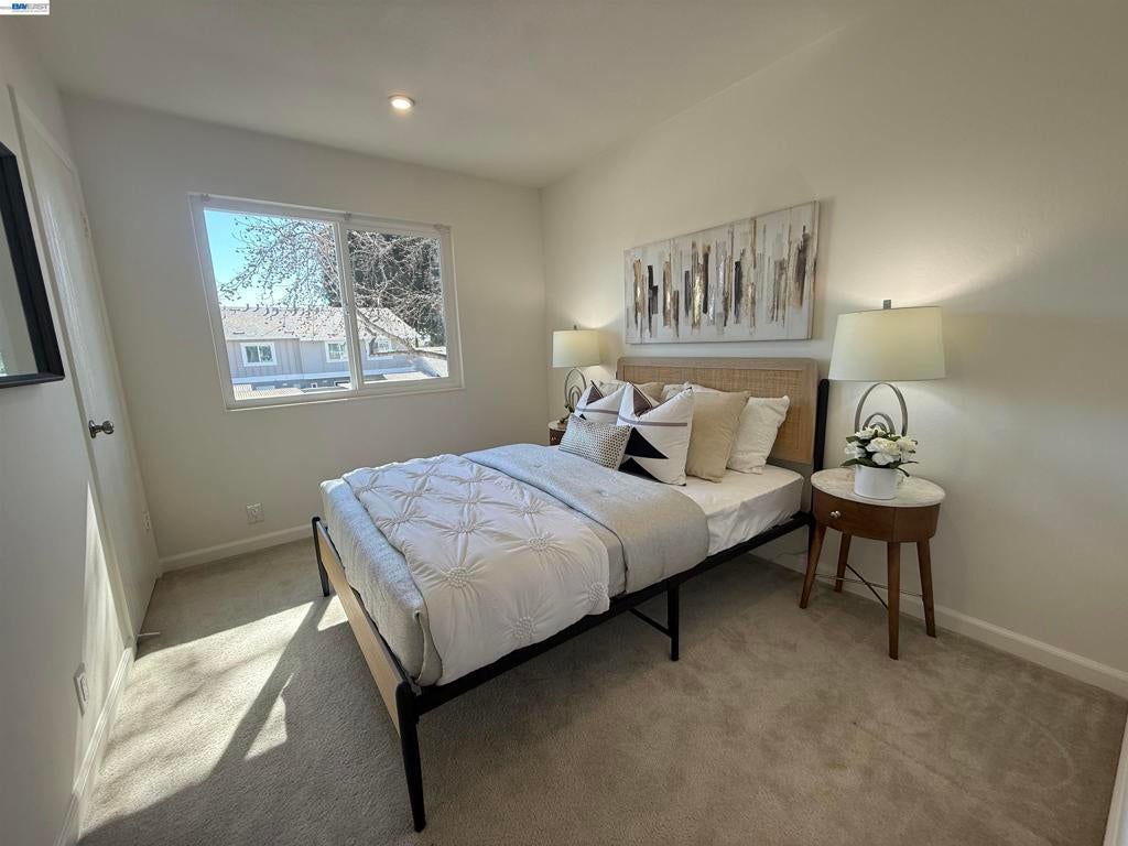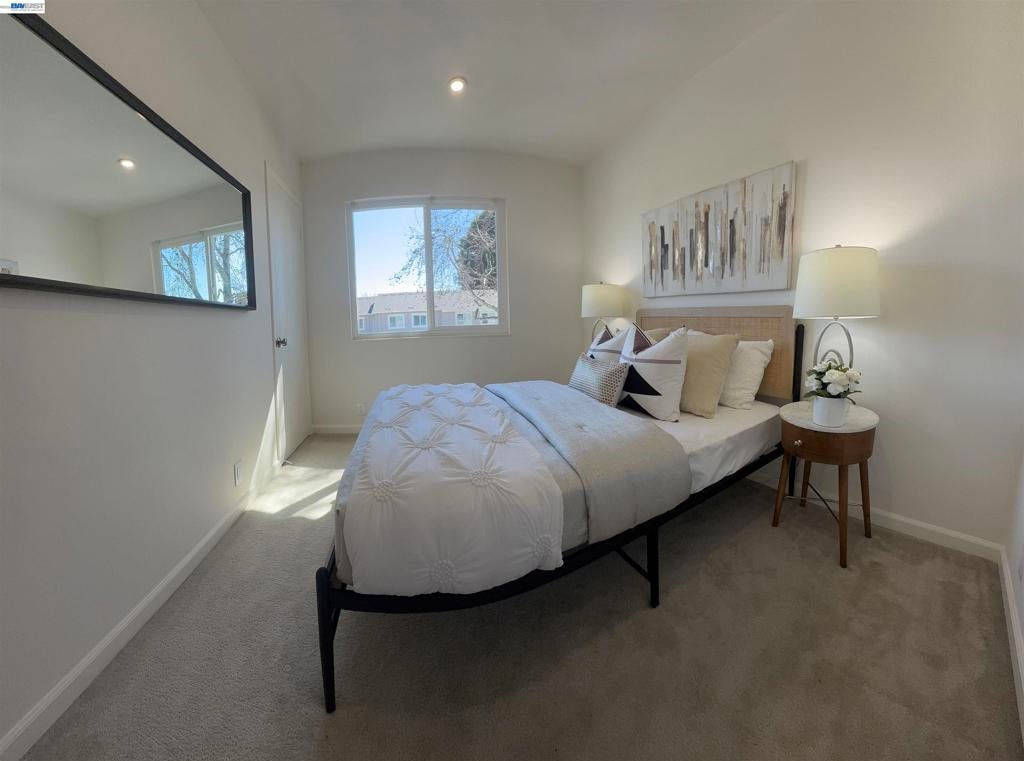This lovely Gentry townhome, located in North Fremont with great schools, easy access to I880 and Dumbarton Bridge, Alameda Creek trail, close to shopping, dining, etc. Open floor plan offers comforts and privacy. Two bedrooms upstairs with a full bath, Primary bedroom with large mirror closets. Living room, kitchen, and dining downstairs with a half bath. Large sliding door by the living/dining brings in lots of natural light. Dual pane windows, Central AC, Fresh interior paint, Enclosed patio in front yard with a storage for your relaxation. Great price for this beautiful townhome.