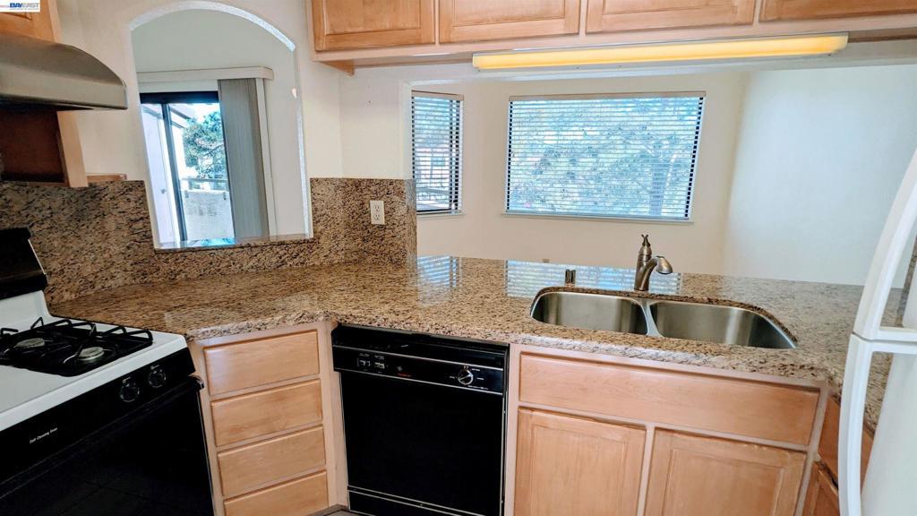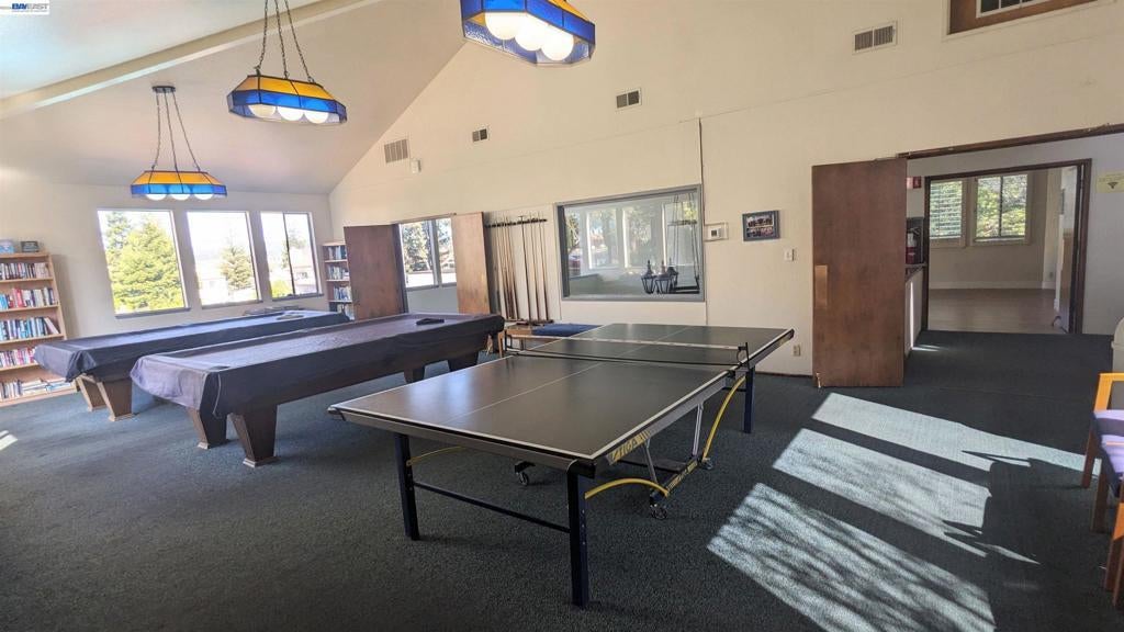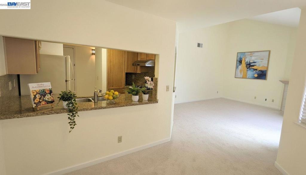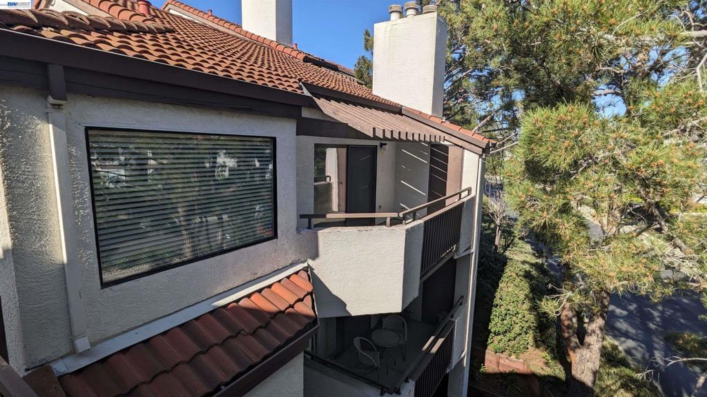 Top-floor 2BD/2BA condo in the gated Mesa Verde community in Hayward. Mesa Verde offers resort-style amenities including five pools and spas, fitness center, tennis courts, and recreation room with ping pong and pool tables, all set among mature landscaping and Spanish-style architecture. This 2 bedroom units has 1,025 sq ft featuring a vaulted-ceiling living room with gas-start fireplace and access to a private balcony that brings in natural light and fresh air. The primary suite also features vaulted ceilings, a walk-in closet, and a private bath with double vanity. Includes a detached one-car garage plus a second dedicated parking space. Convenient location within minutes of shopping and dining, with easy access to BART and Highways 580 and 880 for Bay Area commuting. Some of the photos have been virtually staged to help illustrate the potential layout and use of the space. Each virtually staged image is followed by the same photo in its original, unaltered form for reference. Open House Sunday 3/29 1:30 to 3 PM.