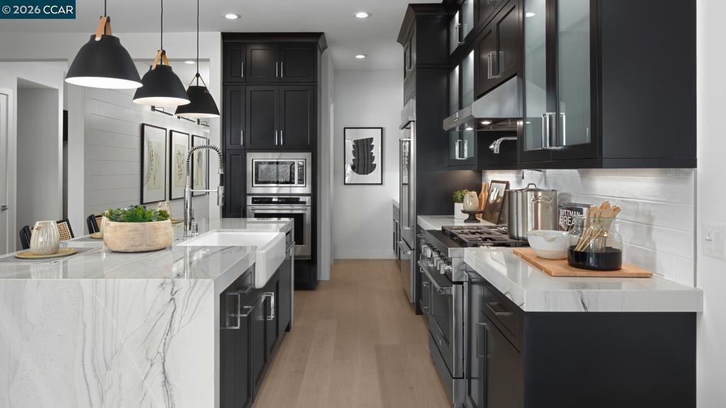 Welcome to Regency at Tracy Lakes, where luxury living takes center stage in this active adult 55+gated community. Three picturesque lakes, this vibrant community offers a fishing dock, 1-acre community garden and dog park. With a wealth of amenities, including a clubhouse, pools, cabanas, yoga studio, fitness center, bocce ball, and pickleball courts, every day is an opportunity for relaxation and recreation. The onsite lifestyle director ensures there’s always something to look forward to; from fitness classes to comedy shows and wine nights. Appealing foyer hallway reveals the expansive great room, with access to the luxury outdoor living space beyond. Well-appointed kitchen offers a large center island with breakfast bar, stainless steel appliances, 36" gas cooktop, quartz countertops, designer tile backsplash, shaker style modern cabinets with, and an ample walk-in pantry. The private primary bedroom suite has a roomy walk-in closet, and a spa-like bath with dual-sink vanity, a large luxe shower with seat. Elegant craftsmanship, with 10-foot ceilings, 8-foot doors, 5 1/4" baseboards, dual-pane Anderson windows and Western sliding doors. Create your ideal space with a generous flex room (photos not of actual home, for marketing only)