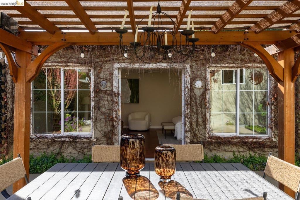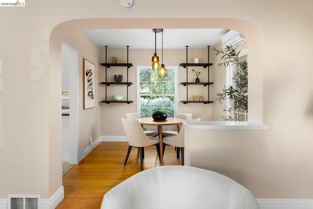 Open House 3/22 2-4PM. Elevated & Sophisticated. Welcome to 409 Pershing, a beautifully upgraded 3-bedroom, 2-bath home offering 1,509* sq ft of living space. Mature landscaping and garden pathways create a warm sense of arrival before you even reach the front door. Inside, spotless hardwood floors, fresh interior paint, and natural light streams through dual-pane windows creating a bright and welcoming environment. The spacious updated kitchen features replaced cabinetry and backsplash and connects easily to the main living areas for everyday living and entertaining. Both bathrooms have been tastefully updated, and a multi-zone mini split HVAC system provides efficient heating and cooling throughout the home. Major improvements include a 14-panel solar array (owned) with Tesla Powerwall (owned), updated electrical service and plumbing, on-demand water heater and earthquake retrofitting, including a seismic gas shut-off valve. The elegantly landscaped, private backyard is designed for gathering, featuring mature landscaping and a built-in stainless steel pizza oven and true outdoor kitchen. A detached versatile bonus space with its own fireplace offers flexibility for a home office, studio, or creative retreat. Open 3/13 5-7PM and 3/14-15 2-4PM *(per public record).