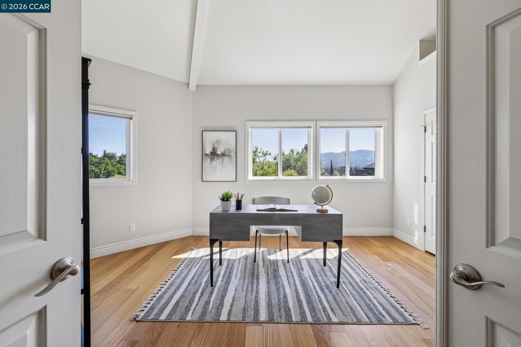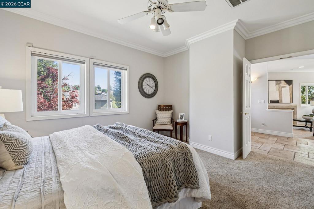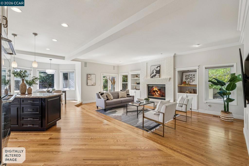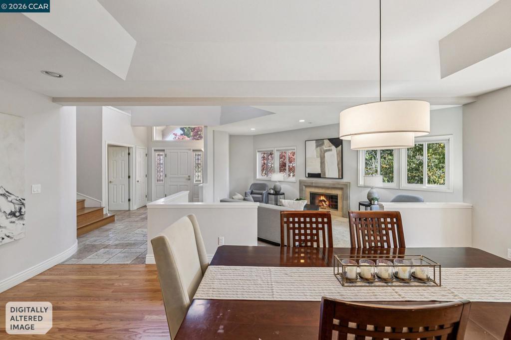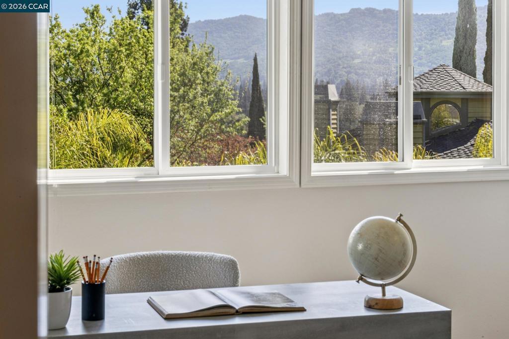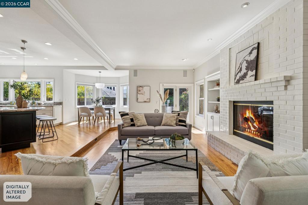 Tucked at the end of a court in coveted Alamo, this exceptional estate offers 3,500± square feet of refined living on an acre of pure privacy backing to open space. Soaring ceilings and rich hardwood floors create a light, airy ambiance throughout the main level, where a bedroom and full bath provide ideal flexibility for guests or multigenerational living. The gourmet kitchen—complete with high-end appliances, abundant cabinetry, and a generous island—opens seamlessly to the inviting family room with custom built-ins and a cozy fireplace, designed for effortless everyday living and memorable entertaining. Expansive gathering spaces flow outdoors to an easy-care yard, perfect for hosting or relaxing in total privacy. Upstairs, oversized secondary bedrooms offer comfort and versatility, while the beautifully remodeled primary suite is a luxurious retreat featuring a spa-inspired bath and spacious walk-in closet. A three-car garage, peaceful surroundings, and premier location complete this rare offering that blends elegance, functionality, and the best in Alamo living.