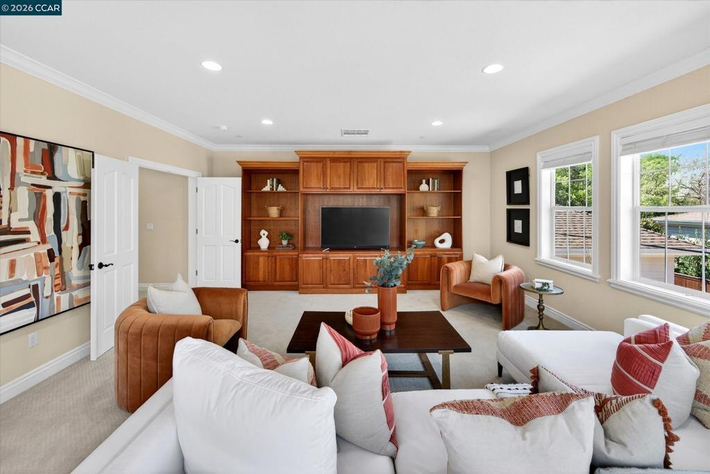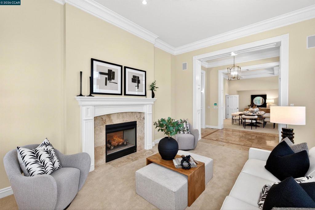 Magee Ranch custom-built masterpiece of architectural detailing, timeless design. Extensive millwork, soaring ceilings, sizeable rms, backyard entertaining mecca. Move-in ready condition. Ideal for multigenerational living. 6148+/-SF on .61 acres, pvt court. Multiple French drs. Plantation shutters. Recessed lights. Crown molding. Travertine & hardwood flrs. Bdrm carpet. Solar. 7 bds. 7 bths incld main-level primary suite w/frpl, dressing rm, walk-thru closet. En suite w/dual vanities, decorative tile, jetted tub in shwr rm. Grand foyer. Formal living rm w/frpl. Formal dining rm w/box beam ceiling. Executive office w/frpl, built-ins, French drs to garden. Bonus rm w/wetbr, built-ins. Large family rm w/frpl, built-ins open to casual dining & chef’s kitchen w/honed granite counters, cherrywd cabinets, upper glass-faced drs. Stainless Thermador dual ovens, dishwashers, refrigerators. 6-burner & griddle cooktop. Butler’s pantry. Dual walk-in pantries. Private bkyd sanctuary. Loggia. Patios. Pergola. Arbors. Outdr kitchen. Pebble tec pool & spa, wtrfalls. Gardens. Lawn. Mature trees & foliage. 2 laundry rms. 3-car garage. Dual HVAC. An exclusive East Bay residence midway betwn Blackhawk Plaza & downtown Danville. Near parks, walking trails, freeways. Top-rated SRVUSD schls w/in 3 mi.