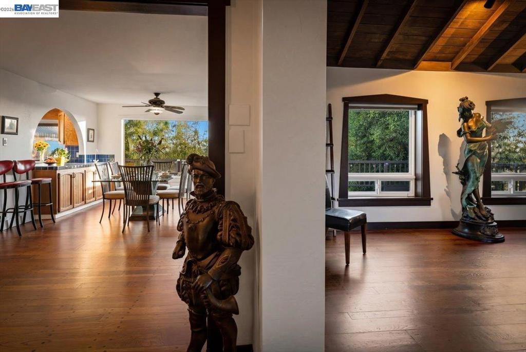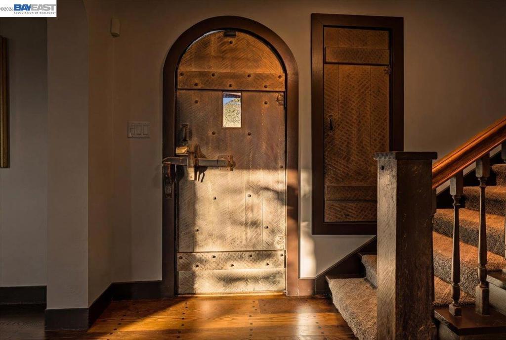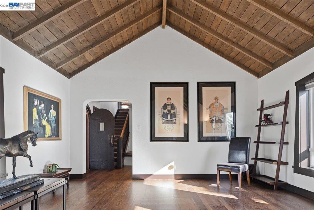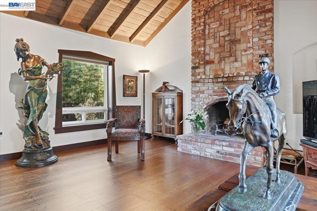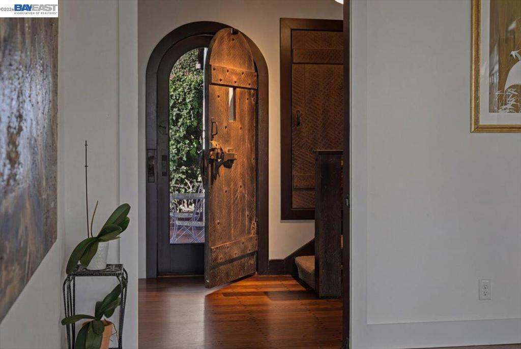 Part classic, part modern, part rustic, this 4-bedroom, 2400+ sq. ft. home on three levels shows immense pride of ownership. Medieval-style arched doors, cathedral ceiling over a wood-burning brick fireplace, glass-vaulted ceiling in the sun/moon-room with views, freshly refinished random plank hardwood floors, Guinevere balcony off an upstairs bedroom overlooking enclosed brick & tile courtyard, walk-in closets in 3 of the 4 bedrooms, cobalt blue galley kitchen, wet bar, double-level deck, and an art/music studio and guest bedroom each with their own entrances. Wine storage closet on the lower level in this home equipped with owned solar, an EV charger plus 220v capacity to add another EV charger, HVAC, remodeled bathrooms with heated toilet seat/towel bars & heated tile floor, and a mini-bamboo forest in the "wealth" section, plus occasional wildlife (deer, squirrels, hummingbirds, owls, etc.) Blocks from the cinema, live theater, live music, grocery, coffee, restaurants, city hall, post office, farmers market, library & BART. Romance and castle intrigue on a manageable scale, this gallant historic Prospect Hill spread has hosted wedding receptions, civic/charitable events, National Night Out and other unique gatherings. The Historic Prospect Hill Neighborhood has been home to city leaders including mayors, city council members, commissioners and prominent business people. Prospect Hill has kept its tradition of respecting history and has angled to be the first neighborhood designated historic in the City of Hayward. More photos/video soon!