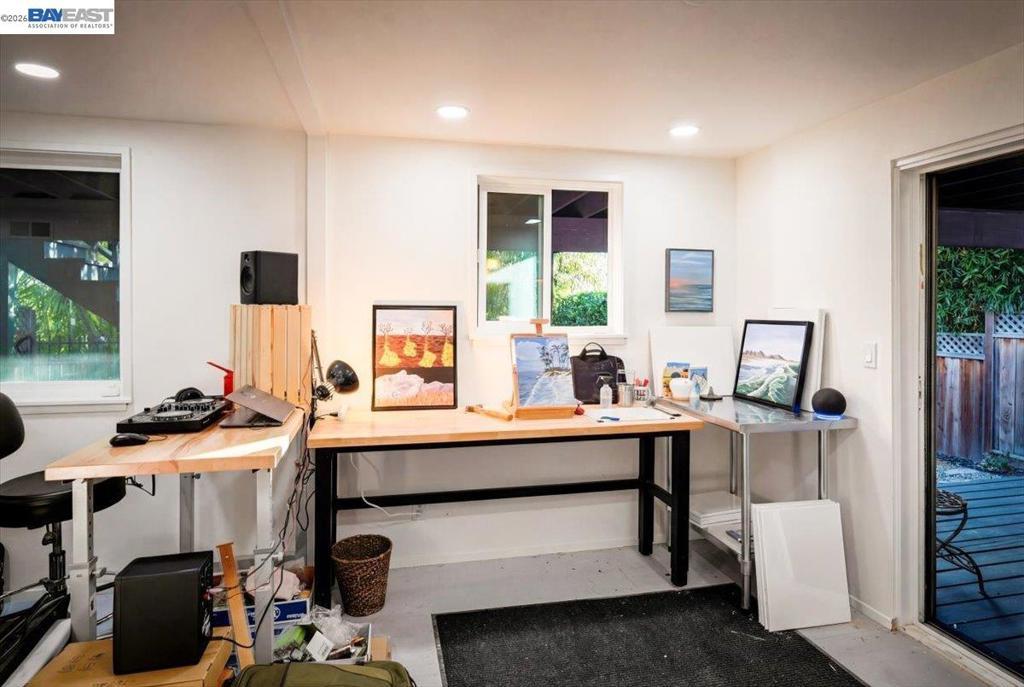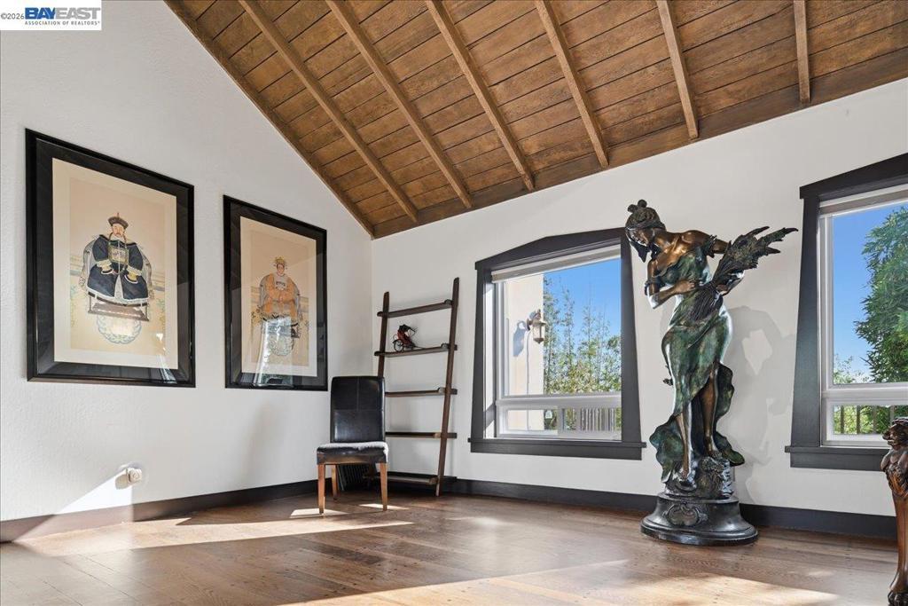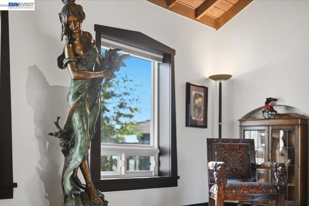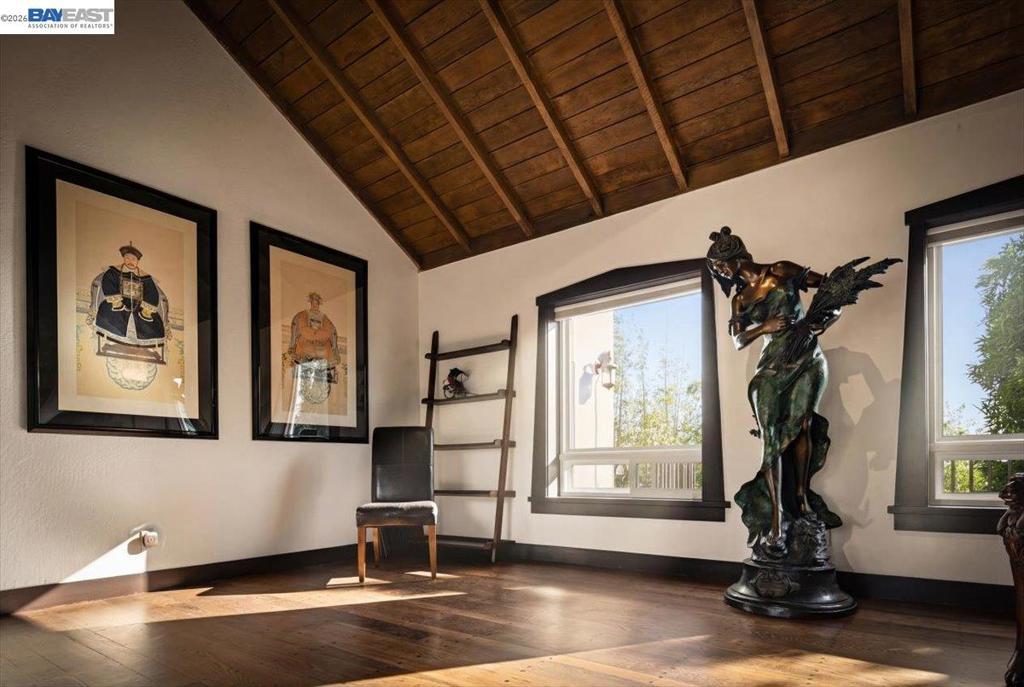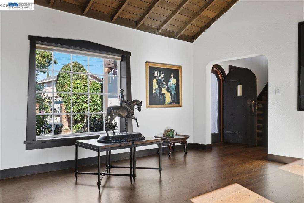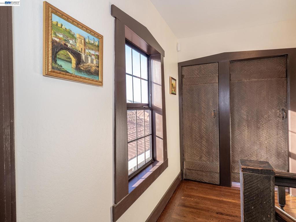 Part classic, part modern, part rustic, this 4-bedroom, 2400+ sq. ft. home on three levels shows immense pride of ownership. Medieval-style arched doors, cathedral ceiling over a wood-burning brick fireplace, glass-vaulted ceiling in the sun/moon-room with views, freshly refinished random plank hardwood floors, Guinevere balcony off an upstairs bedroom overlooking enclosed brick & tile courtyard, walk-in closets in 3 of the 4 bedrooms, cobalt blue galley kitchen, wet bar, double-level deck, and an art/music studio and guest bedroom each with their own entrances. Wine storage closet on the lower level in this home equipped with owned solar, an EV charger plus 220v capacity to add another EV charger, HVAC, remodeled bathrooms with heated toilet seat/towel bars & heated tile floor, and a mini-bamboo forest in the "wealth" section, plus occasional wildlife (deer, squirrels, hummingbirds, owls, etc.) Blocks from the cinema, live theater, live music, grocery, coffee, restaurants, city hall, post office, farmers market, library & BART. Romance and castle intrigue on a manageable scale, this gallant historic Prospect Hill spread has hosted wedding receptions, civic/charitable events, National Night Out and other unique gatherings. The Historic Prospect Hill Neighborhood has been home to city leaders including mayors, city council members, commissioners and prominent business people. Prospect Hill has kept its tradition of respecting history and has angled to be the first neighborhood designated historic in the City of Hayward. More photos/video soon!