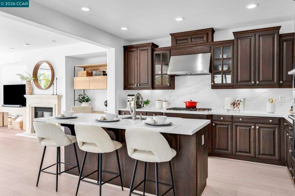 Beautiful Windemere home by Lennar located on a quiet court backing to open space with sweeping hill views, just around the corner from Ramona Park and close to top-rated schools. Thoughtfully designed floor plan features formal living and dining rooms with European wide-plank white oak floors and plantation shutters, plus a main-level bedroom or private office with full bath. The chef’s kitchen offers a large island with bar seating, new quartz countertops, stainless appliances including a Wolf gas cooktop and built-in oven/convection microwave, a generous walk-in pantry & breakfast nook opening to the backyard. The kitchen flows into a spacious family room with gas fireplace, media niche, and picturesque views. Upstairs - primary suite includes double-door entry, built-in cabinetry, dual vanities, soaking tub, glass-enclosed shower, & two large walk-in closets. A large loft, built-in two-desk workstation, three additional bedrooms & laundry room complete the upper level. The private backyard offers a stone patio, fountain, and fruit trees (peach, apple, and orange). Recent upgrades: fresh interior paint, updated fixtures, new carpet, Hunter Douglas window treatments, wrought-iron bannister, 240 V - for EV charger, water filtration system & owned solar. OH Sat & Sun 2-4.