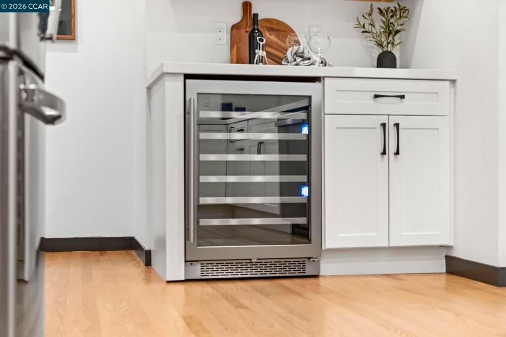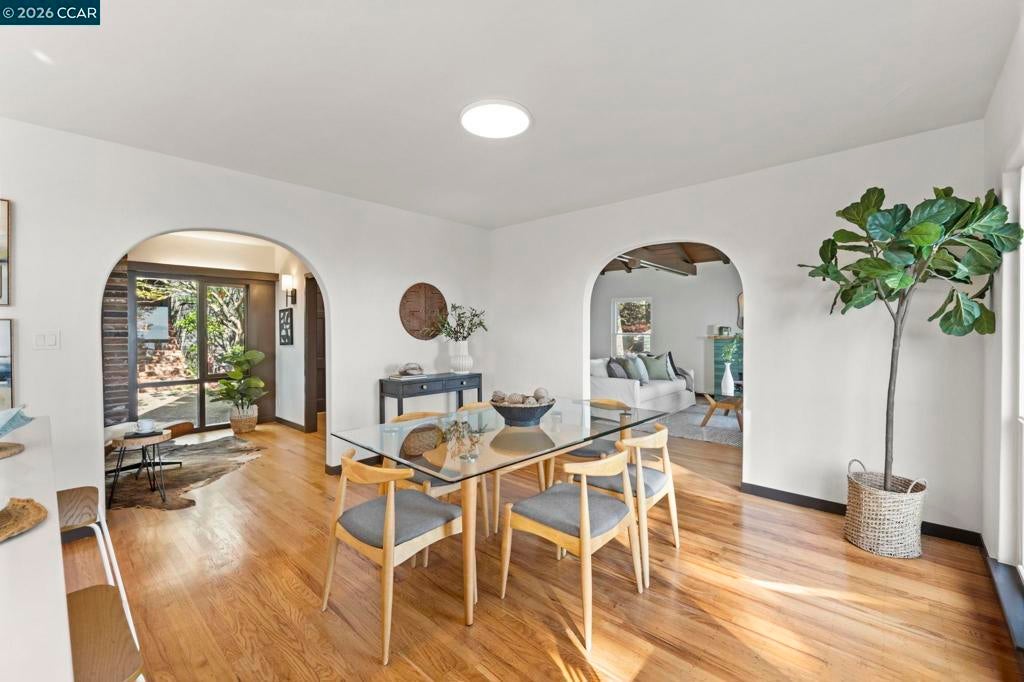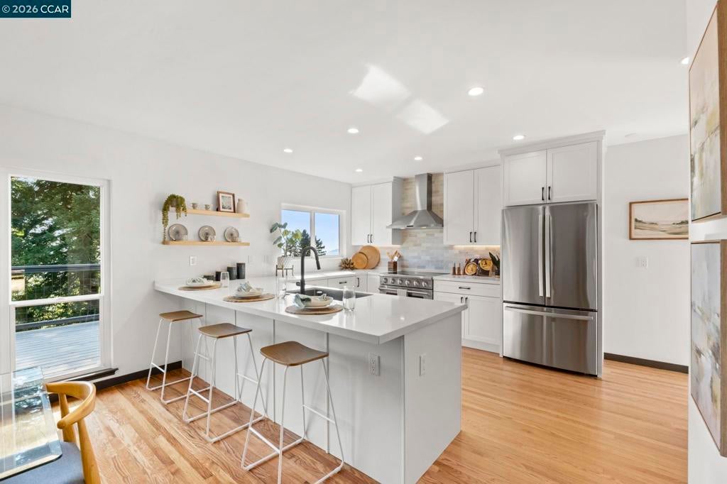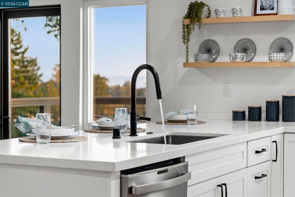 A quintessential Berkeley home where comfort, style, and Bay views come together in perfect balance. Adjoining lot at 1162 Miller available makes it the perfect compound. Behind a peaceful front patio, this light-filled residence reveals a split-level layout that feels both open and thoughtfully defined — offering a seamless flow between gathering spaces and private retreats. The chef’s kitchen is the heart of the home, featuring quartz counters, custom cabinetry, premium appliances, and a wine fridge. It connects effortlessly to the dining area and a generous deck, perfect for al fresco dinners or relaxed mornings overlooking the bay. Three inviting bedrooms share the main level, including one that functions beautifully as a dedicated home office with its own private entrance. The lower level enhances the living experience with a welcoming family room, separate media area, wet bar, full bath, and a guest bedroom that opens to a private deck surrounded by greenery. Two laundry areas and a two-car garage add convenience to the home’s thoughtful design. Amazing fruit trees and a bocce court complete the backyard. This home offers the perfect harmony of sophistication, comfort, and connection to nature — a serene East Bay retreat designed for modern living. BESO (5)