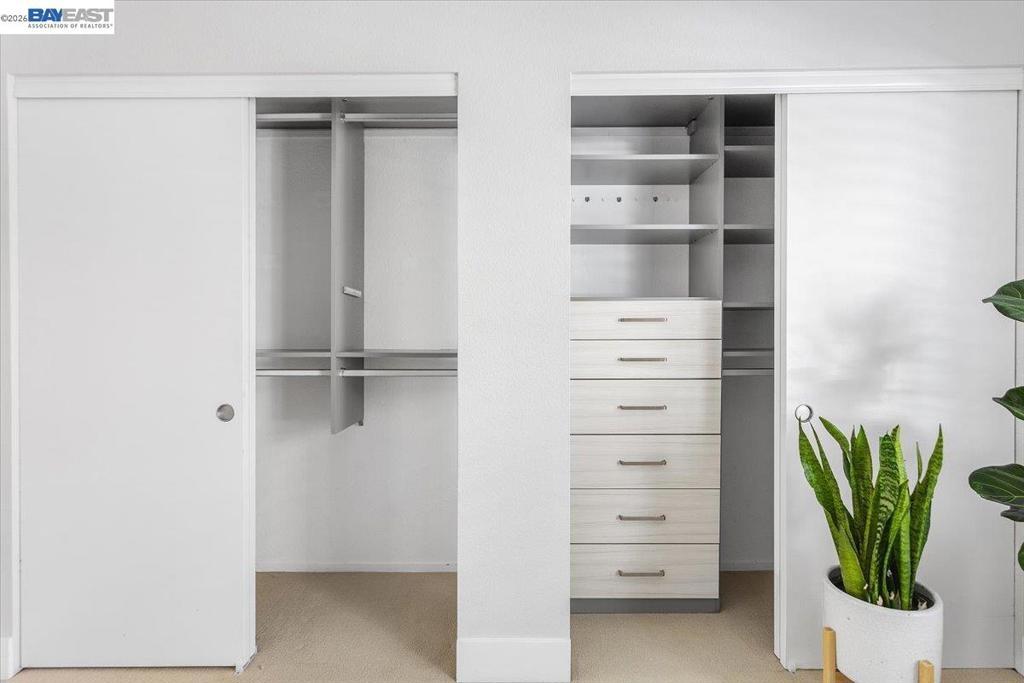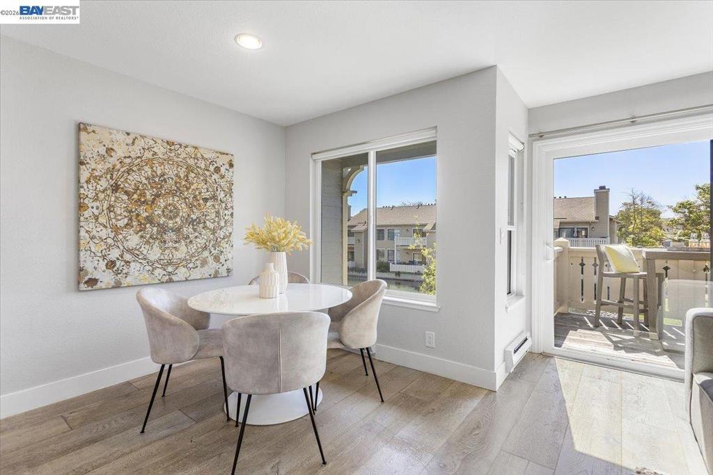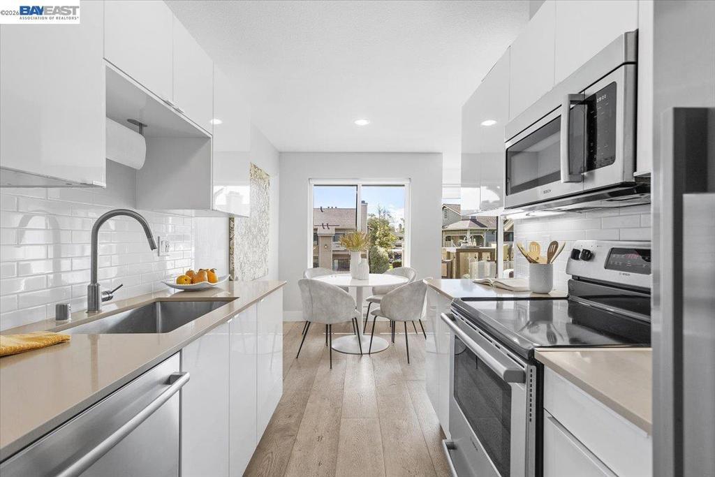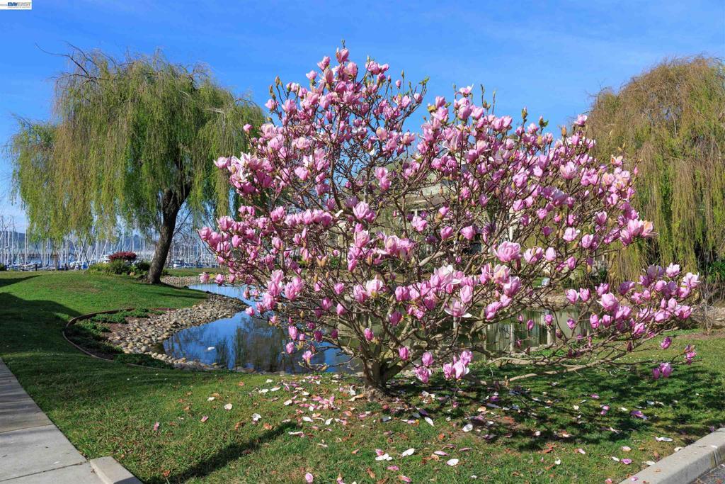 Wake up to tranquil water and tree views in this luxurious, upper-level condominium in The Shores at Marina Bay. This exquisitely renovated one-bedroom home features dual-paned windows, custom closet systems, a built-in media cabinet, a towel warmer in the bathroom, and a full-size washer and dryer. The light-filled living, dining, and kitchen areas showcase peaceful water views, creating a calm and inviting ambiance throughout. The elegant updated kitchen features quartz countertops and high-end stainless-steel appliances, combining style and functionality. Step outside to the private balcony overlooking lush landscaping and a picturesque lagoon—perfect for morning coffee, relaxed al fresco dining, and sunsets. Enjoy the surrounding natural setting, where herons, egrets, ducks, & springtime ducklings are frequent visitors, and beautiful magnolia “tulip trees” enhance the community’s landscaping. The Shores community offers 2 pools/spas, a fitness center, and skillfully maintained grounds. Ideally located near the Bay Trail’s 17 miles of scenic walking and biking paths, the nearby Marina Bay Farmers Market, waterfront restaurants, and Richmond’s shoreline. Kayaks can be carried to the Bay for paddling along the waterfront. Definitely one of the most beautiful homes in The Shores!