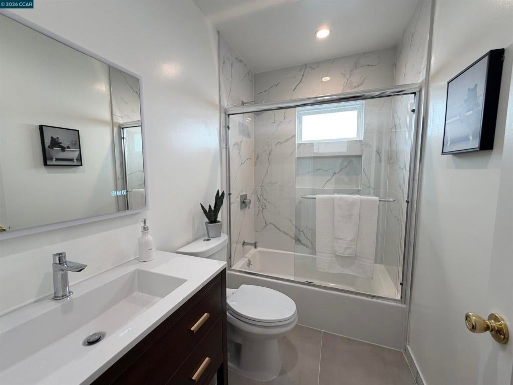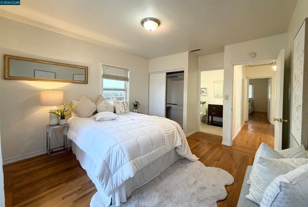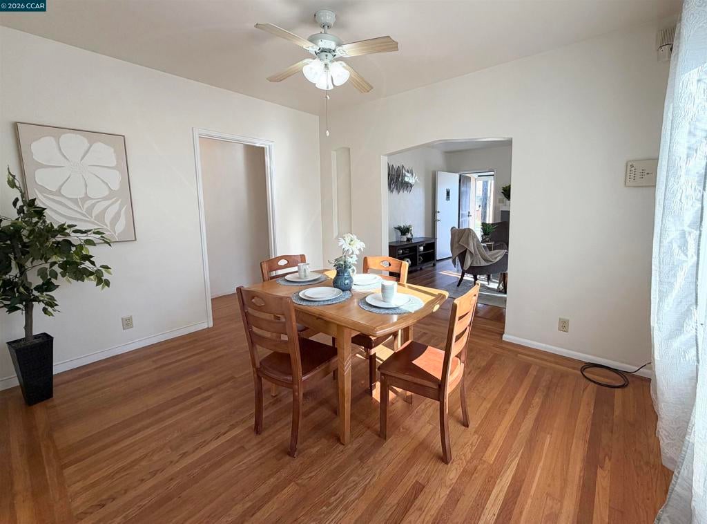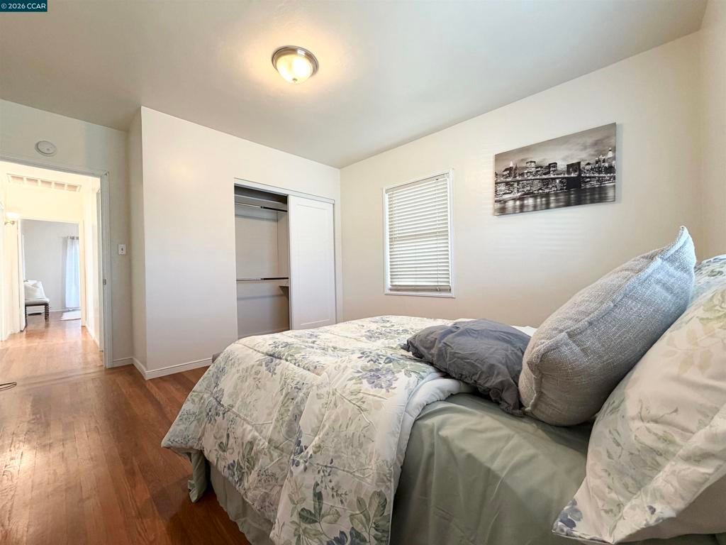 Beautifully renovated home offering 1,070 sq ft of stylish living space on a spacious lot. Features central heating and air conditioning, a bright and inviting living room, and a formal dining room ideal for everyday living and entertaining. Gourmet kitchen is appointed with elegant marble countertops, and ample space for cooking and hosting. Well-sized bedrooms are filled with natural light, creating a warm and comfortable retreat. Two brand-new bathrooms feature modern porcelain tile and high-end fixtures. Enjoy a long driveway for multiple vehicles parking and a large backyard with fruit trees. Conveniently located with easy access to I-580 and I-880, and within walking distance to shops, restaurants, public transportation, and Bay Fair BART, making commuting and daily conveniences effortless.