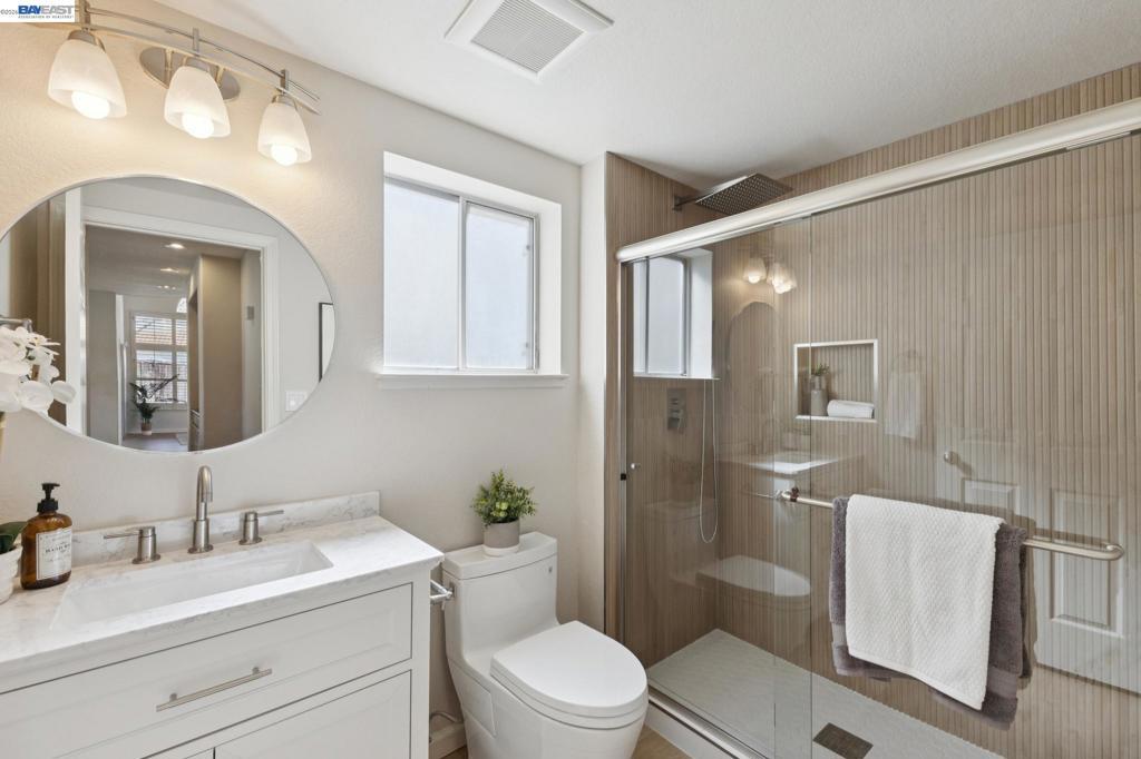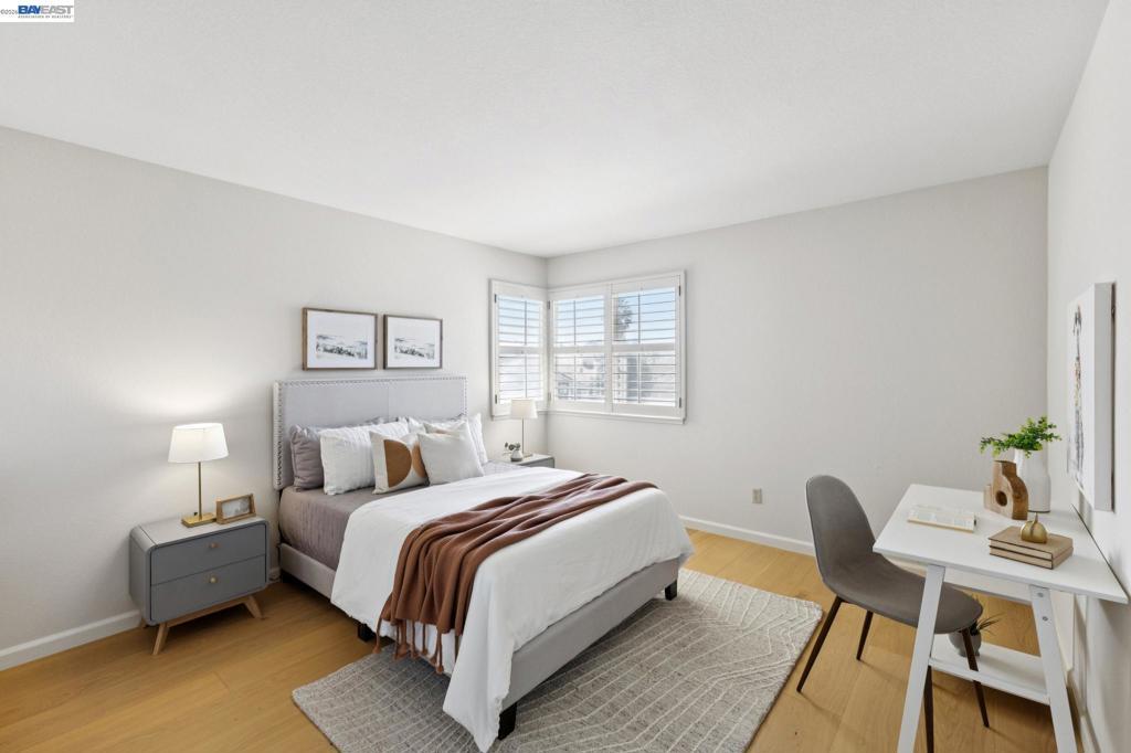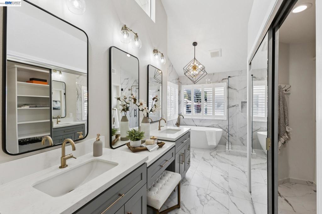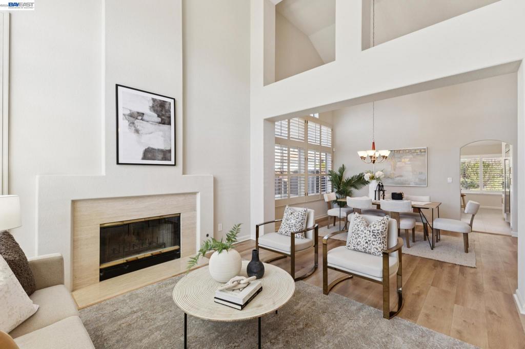Remodeled modern charmer on a private cul-de-sac lot. Soaring vaulted ceilings, hardwood style LVP and engineered hardwood flooring throughout, elegant formal living room with fireplace and spacious dining room offer inviting space for entertaining. The remodeled gourmet kitchen features quartz countertops, a large center island with bar seating, six-burner gas range/oven combo with custom hood, built-in Sub-Zero refrigerator/freezer, and stainless appliances. The large family room features a gas fireplace and wet bar. The main level includes a bedroom, remodeled full bathroom and a functional laundry room with sink. Upstairs finds a large primary bedroom with vaulted ceiling and private balcony. The remodeled spa-like primary bath is your own private sanctuary, with vaulted ceiling, marble floors and walls, freestanding soaking tub, walk-in shower, dual-sink vanity with makeup station, and large walk-in closet with built-in storage. There are also 3 large secondary bedrooms upstairs, along with a functional hall bath with dual vanity. There is a 3 car garage with an owned solar system and battery backup. The backyard features custom patio areas, lawn, and a spacious side yard. Close to award-winning schools, Mission Hills Park, I-680, the ACE train, and downtown Pleasanton